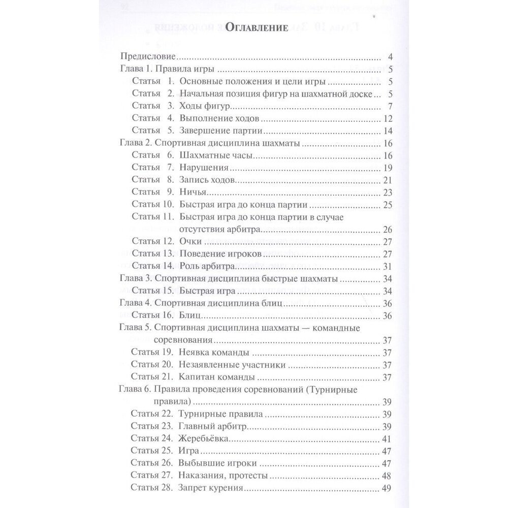 Сборник включает в себя новые правила шахмат и шахматных соревнований, действующие в настоящее время. В него вошли 53 статьи, охватывающие все многообразие современных шахмат.