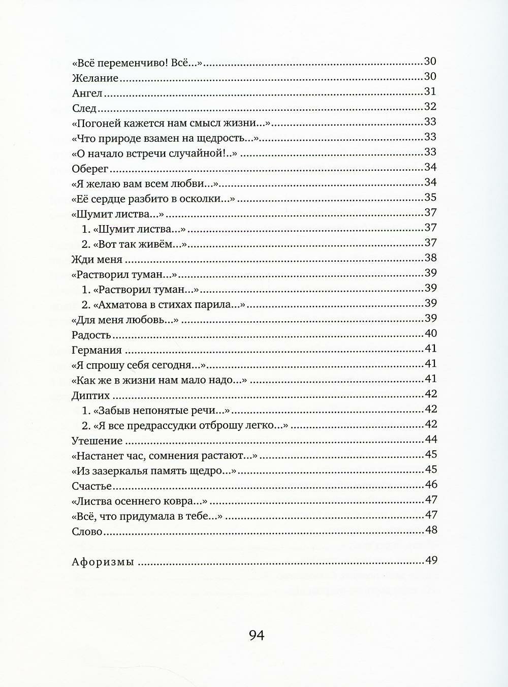 Новая книга Елены Циммер продолжает серию поэтических альбомов, в которых гармонично сочетаются стихотворные строки с изящной графикой автора. То задумчивая, то восторженная, она просит, требует, плачет, прощает, благодарит, и всегда искренне, от сердца — вот что так дорого. Главная тема—любовь: к родной «акварельной» Москве, к осенним дождям и майским грозам, к сыну и любимому человеку, наконец, к истине, к Богу. Не потому ли стихи Елены Циммер находят отклик в душе?..