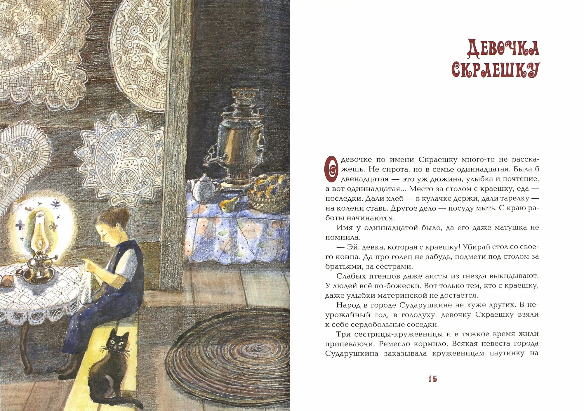Прочитали книгу. Ощущение как от чего-то странного. Сказки разные. Есть и не очень понятные, например Скоморошек и Танцующий на дюнах. Самая волшебная - Лепота. Слог очень сложный и много устаревших слов. Мне приходилось переводить и доносить смысл до ребят ( 8 и 13 лет). Иллюстрации изумительные. Очень хорошее качество книги.