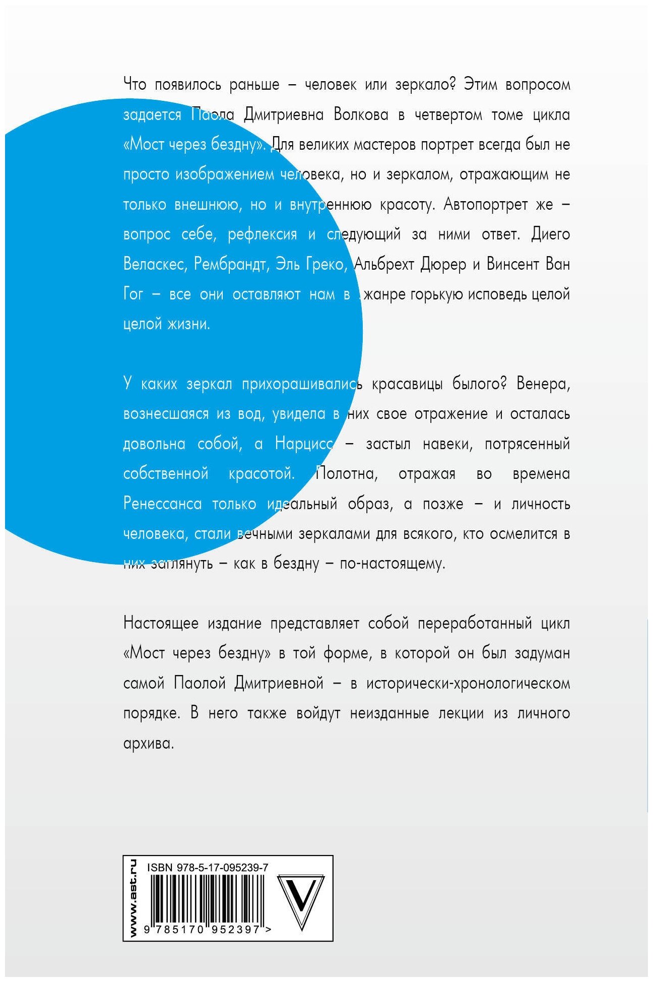 Что появилось раньше - человек или зеркало? Этим вопросом задается Паола Дмитриевна Волкова в четвертом томе цикла "Мост через бездну". Для великих мастеров портрет всегда был не просто изображением человека, но и зеркалом, отражающим не только внешнюю, но и внутреннюю красоту. Автопортрет же - вопрос себе, рефлексия и следующий за ними ответ. Диего Веласкес, Рембрандт, Эль Греко, Альбрехт Дюрер и Винсент Ван Гог - все они оставляют нам в этом жанре горькую исповедь целой жизни.