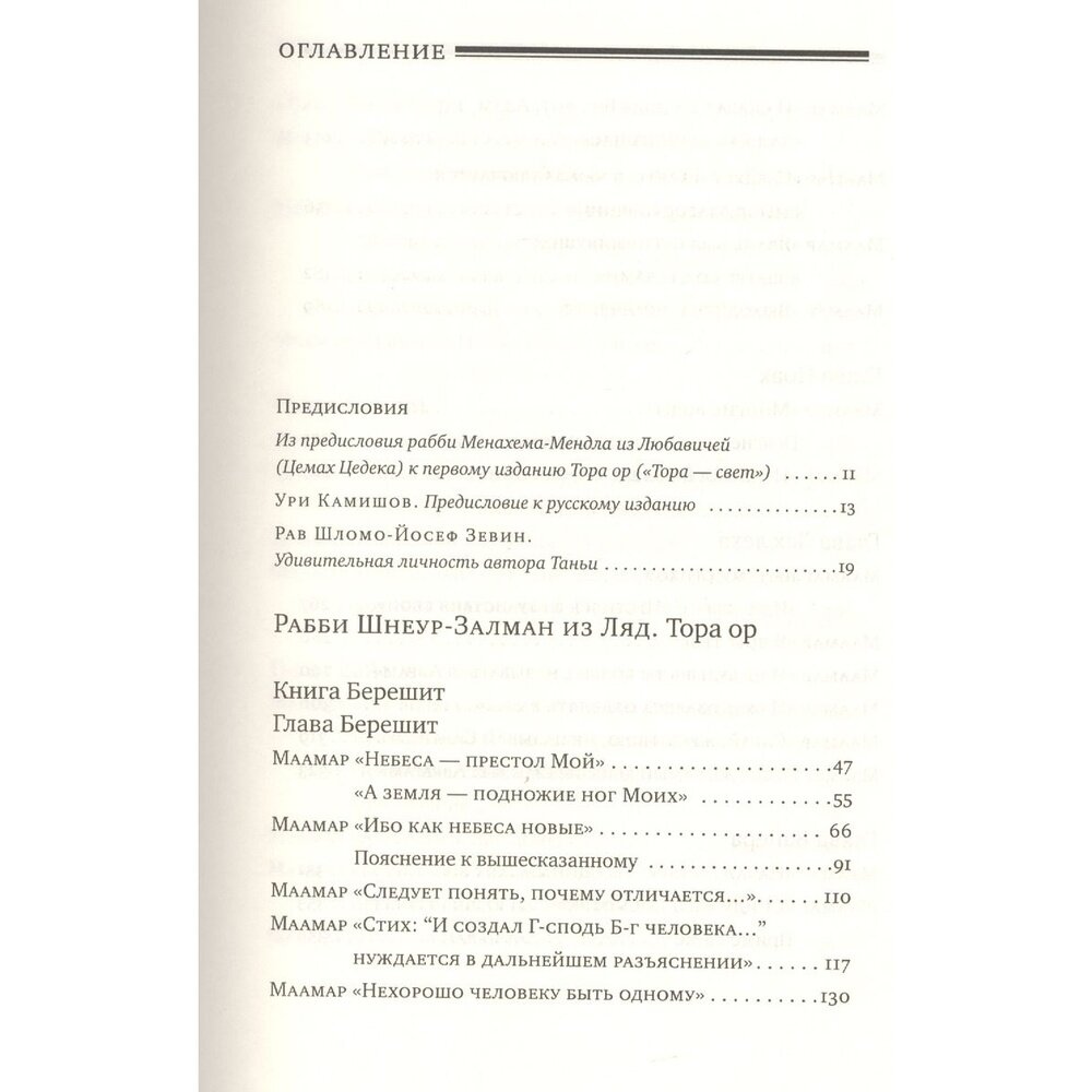 Тора ор ("Тора - свет") - важнейший сборник поучений основателя любавичского хасидизма рабби Шнеура-Залмана из Ляд, собранных и отредактированных его внуком, третьим Любавичским Ребе, рабби Менахемом-Мендлом, известным также как Цемах Цедек. Проповеди эти посвящены устройству мира, души и служению Всевышнему. Книга, которая впервые публикуется в русском переводе, адресована вдумчивому читателю, интересующемуся мистическими, философскими и мировоззренческими аспектами иудаизма. Классический хасидский труд снабжен пояснениями, подробными комментариями и справочными материалами, подготовленными специально для данного издания.