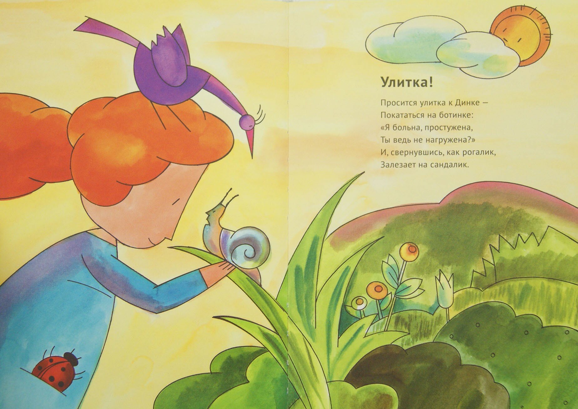 Нашему сыну (1.11) книга сразу зашла, теперь одна из самых любимых. Легко запомнил имя «Дина», там фигурируют его любимые животные, которых он уже может называть (улитка, собака, жираф, божья коровка), так что нам книга очень нравится! С моей стороны - книга легкая, иллюстрации приятные.