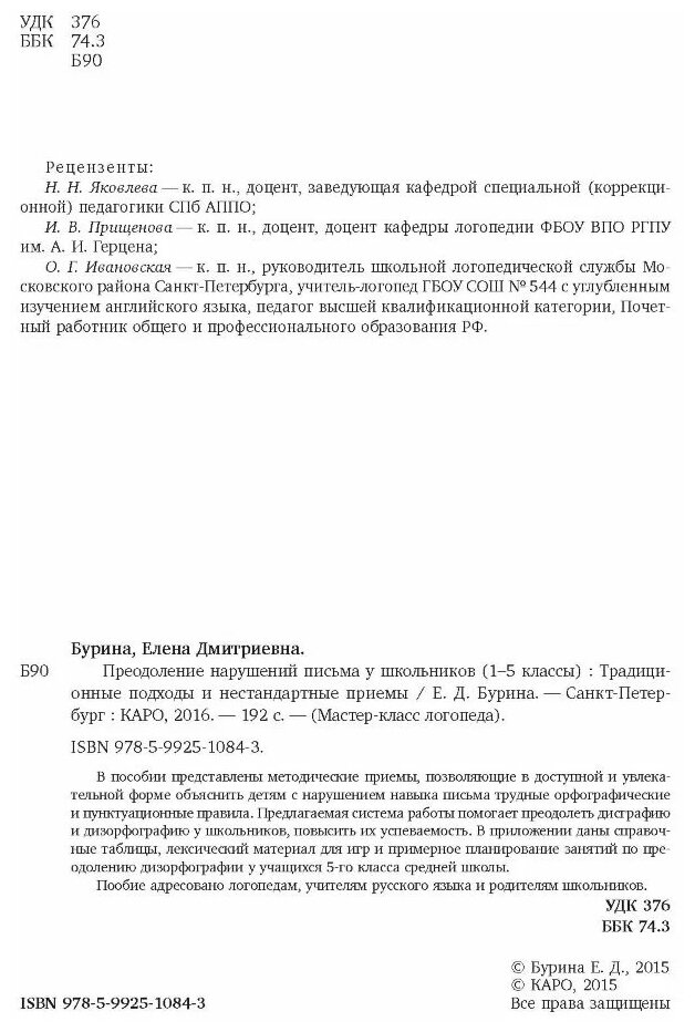Преодоление нарушений письма у школьников (1-5 классы). Традиционные подходы и нестандартные приемы (Елена Бурина); КАРО, 2016