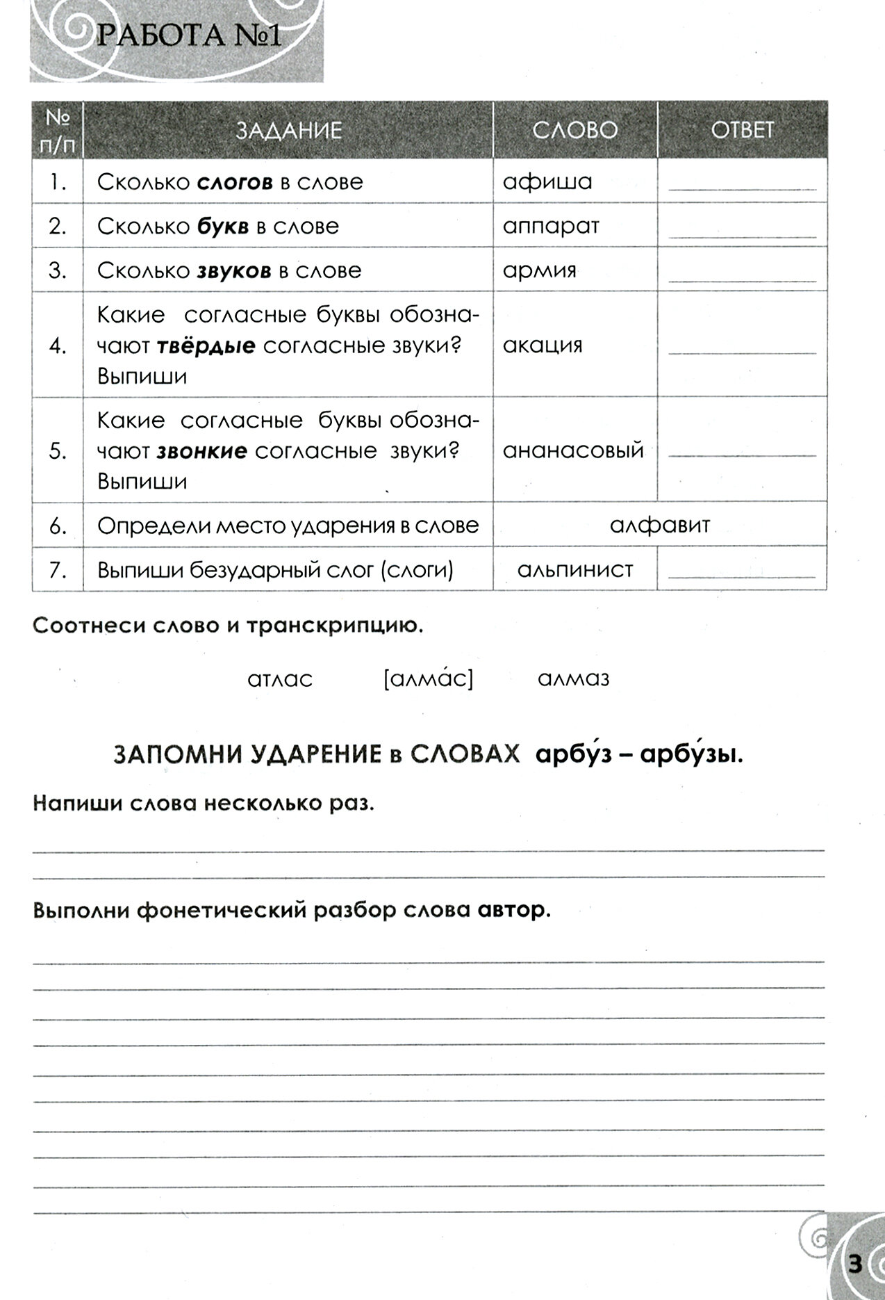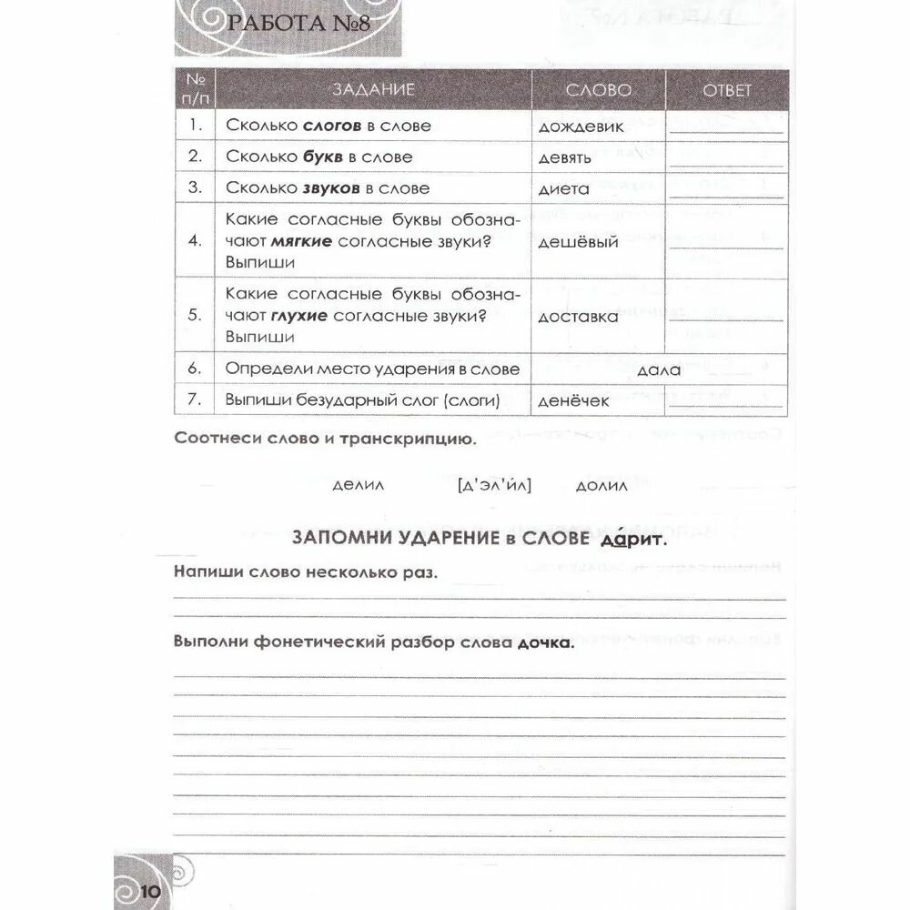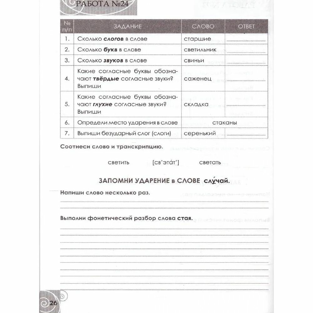 Мы попытались помочь в решении этой проблемы, выпустив пособие под названием «Фонетический тренинг» (1-2 классы), включающий разные задания на уровне звучащего слова. Это и деление слова на слоги с определением ударного, выделение звонких и глухих согласных, твёрдых и мягких, а также полный разбор коротких слов по звукам-буквам.
