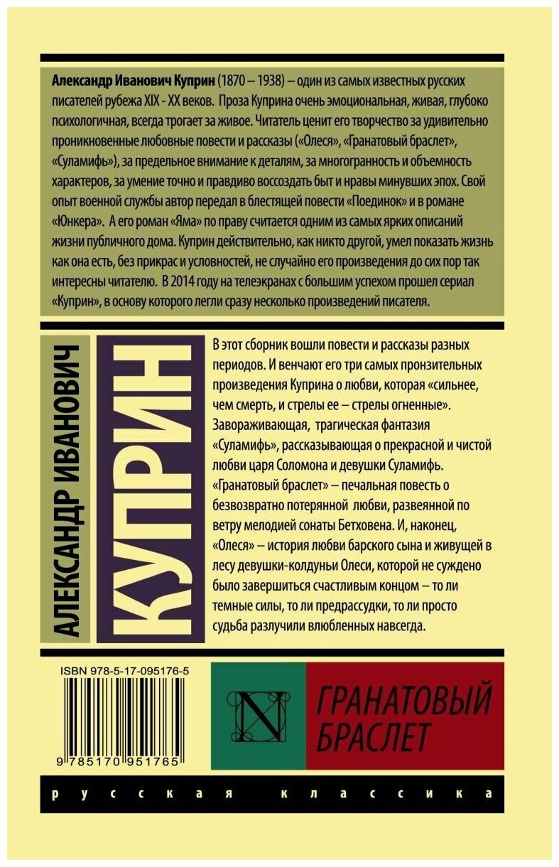 На сегодняшний день товар «Книга: Гранатовый браслет (Куприн Александр Иванович); ООО "Издательство Астрель", 2020» можно купить с кешбеком в 4 магазинах: book24, Буквоед, Яндекс.Маркет, Читай-город