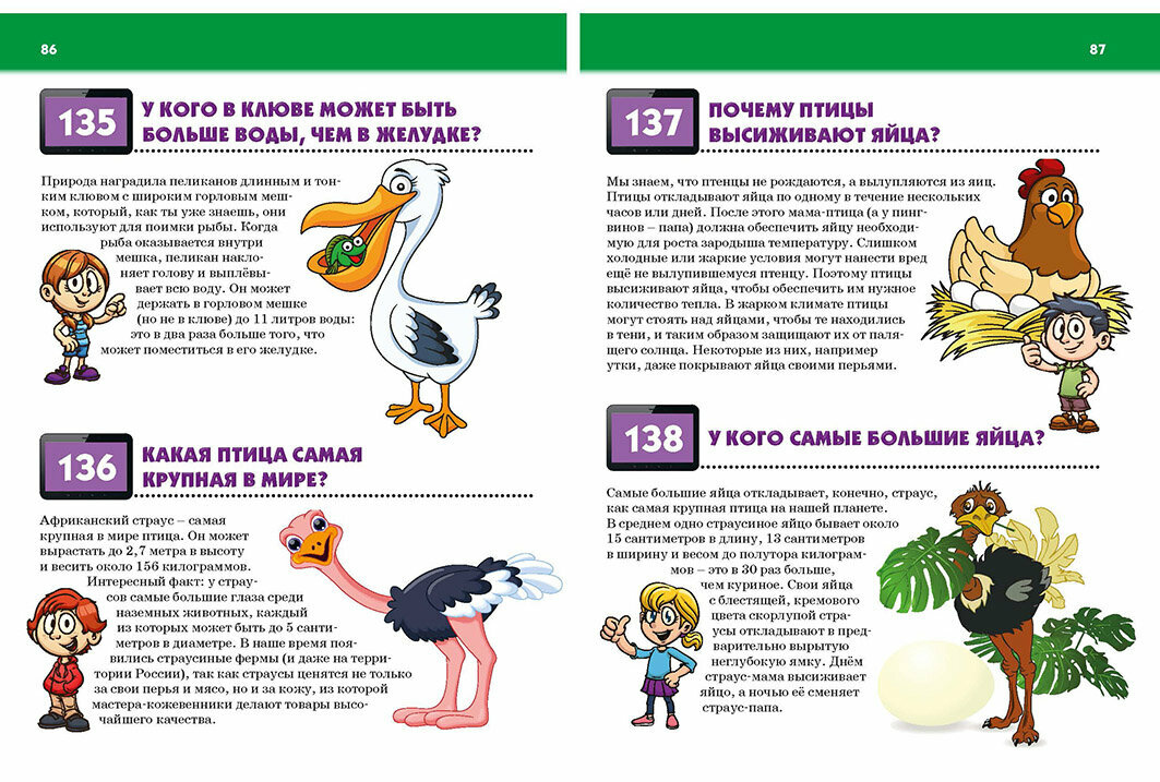Книга очень интересная, яркая, ответы, наверное, на почти все детские вопросы. Много интересных фактов, ответы на большинство вопросов не знали даже мы и наши родители. Сначала купили девочке 5 лет в подарок, но когда увидела моя 9летняя дочь-начала просить себе, читаем всей семьей! Всем рекомендую!