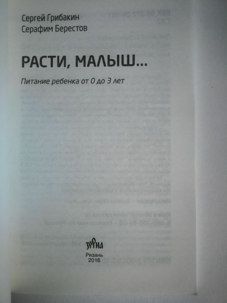 Расти малыш... Питание ребенка от 0 до 3 лет (Сергей Грибакин); Издательство «Зерна», 2016