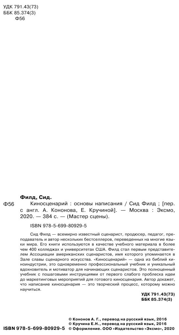 Киносценарий: основы написания (Филд Сид); ООО "Издательство "Эксмо", 2016