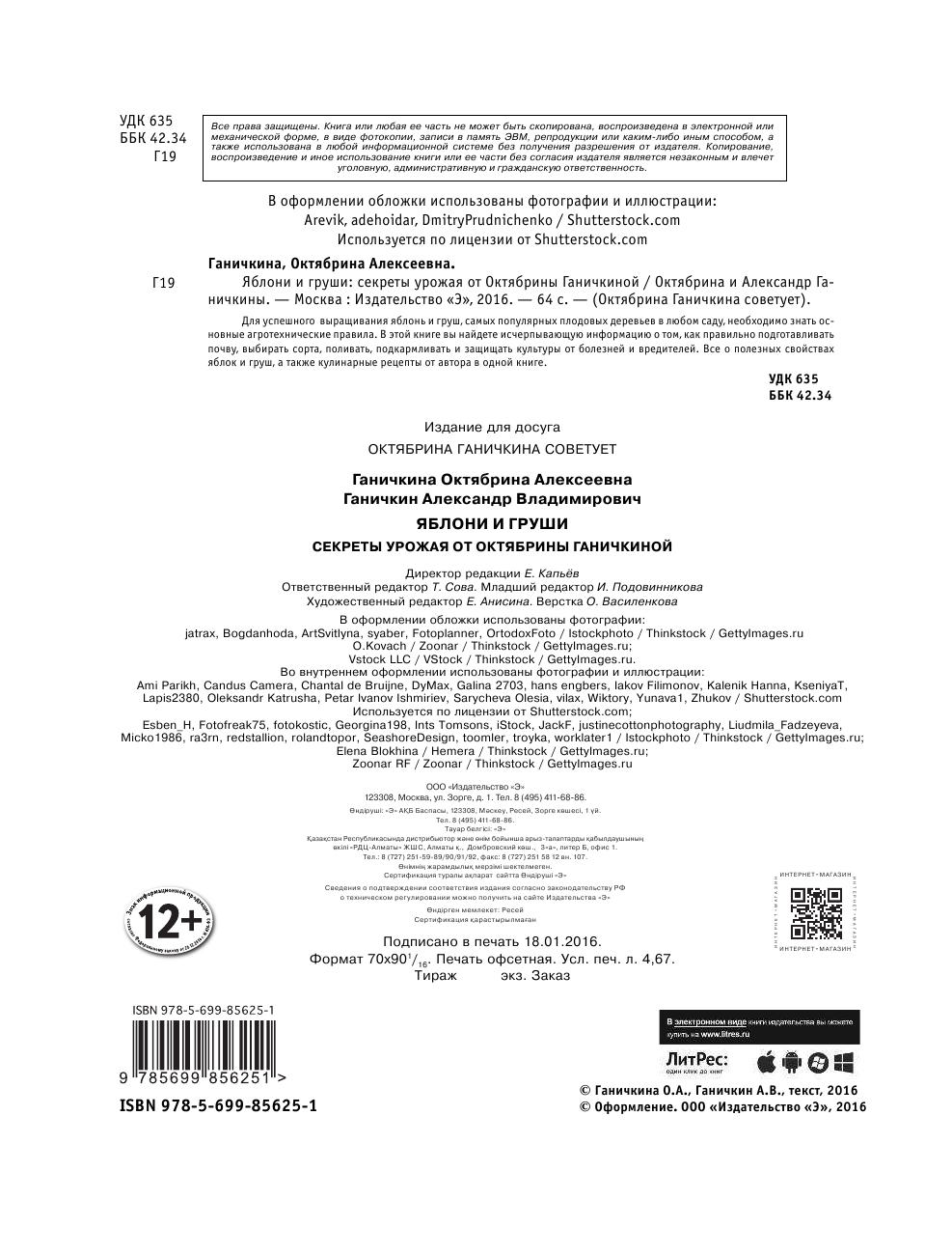 Яблони и груши. Секреты урожая от О. Ганичкиной (Ганичкина Октябрина Алексеевна, Ганичкин Александр Владимирович); ООО "Издательство "Эксмо", 2016