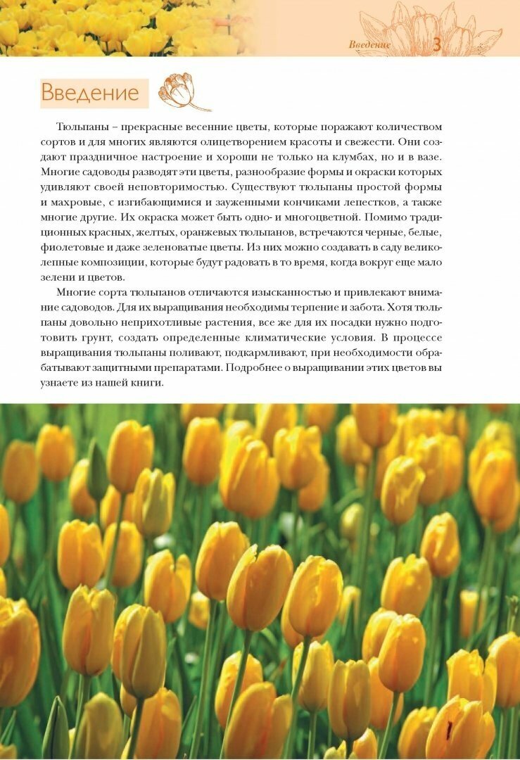 Тюльпаны - прекрасные весенние цветы, отличающиеся большим разнообразием форм и красок. Их выращивают в саду и в теплицах из луковиц, а иногда и семян. Из книги вы узнаете о сортах и посадке тюльпанов, особенностях ухода за ними, качестве и хранении посадочного материала, технологии выгонки и многом другом.