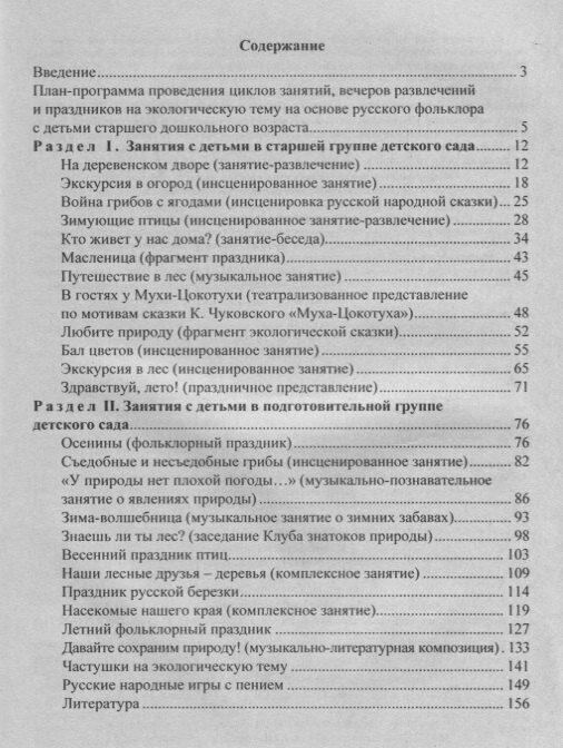 Предлагаемое пособие содержит план-программу и развернутые сценарии циклов музыкальных, инсценированных, развлекательных и познавательных занятий и праздников экологической направленности на основе русского народного творчества с детьми старшего дошкольного возраста.