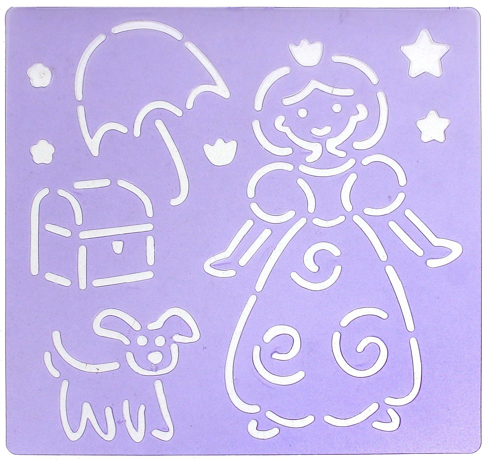 4 листа полупрозрачных фиолетовых пластиковых трафарета - приятные, гнущиеся, не воняют.