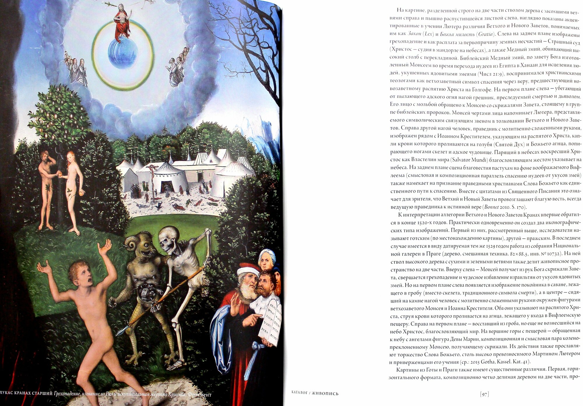 «Лукаса Кранаха Старшего мы вроде бы неплохо себе представляем: его произведения есть и в Пушкинском, и в Эрмитаже, и даже в некоторых частных коллекциях. Но когда на одной выставке и, соответственно, под одной обложкой роскошного альбома-каталога соединяются и все эти работы, и к ним прибавляются картины и гравюры из Готы, Берлина, Мадрида, Праги, Будапешта — впечатление совсем особенное. Кроме того, в каталоге несколько статей и развернутые аннотации к каждому произведению, и складывается объемный и очень непростой образ не только самого Кранаха Старшего, но и целой мастерской, им созданной, руководимой и завещанной сыновьям-продолжателям и внуку. Более того — перед нами возникает облик эпохи, полной исторических потрясений и художественных открытий.