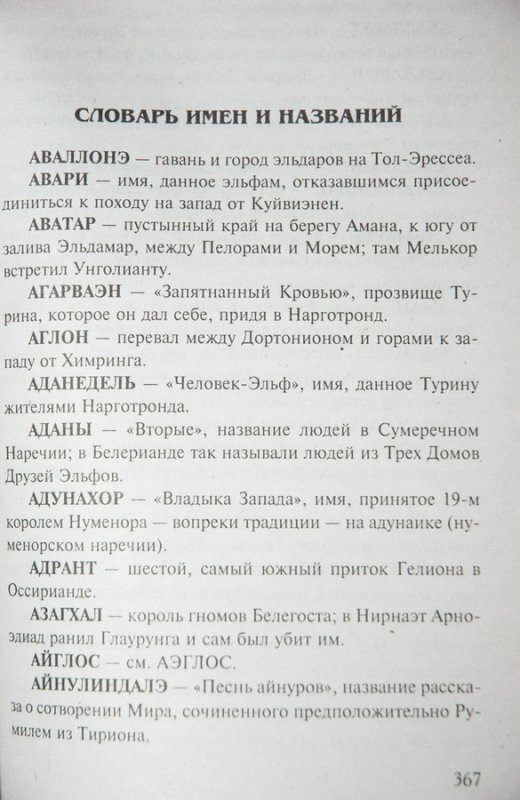 В отличие от "Властелина колец" и др. книг Толкина, "Сильмариллион", пожалуй, напоминает свод легенд, я бы назвала его Скрижалью о первых эпохах Средиземья. Если честно, свой выбор я остановила на этом издании, потому что мне не нужны были красочные иллюстрации, меня интересовала конкретика, и я ее получила за умеренную цену. Но надо быть готовым к тому, что это книга построена иначе, в ней нет живых диалогов, зато много интересных сведений о мире, придуманном Толкином. Книга содержит предисловие, написанное сыном автора Кристофером, письмо Толкина к Мильтону Уолдману, а также схему разделения эльфов и названия народов, которая помогает понять, что к чему.