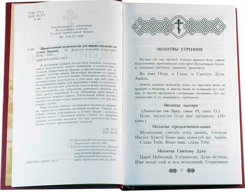 Получила сегодня этот молитвослов. Скажу сразу-это самый лучший из всех мною виданных и читанных. Это настольная книга каждого верующего. Качество книги отменное. Бумага великолепная,оформление очень приятное. В содержании на странице в магазине ошибка,опечатка. В содержании настоящего издания все 10 заповедей. Рекомендую всем,кто обратит внимание на эту книгу. Лучше вы не найдете. Спасибо магазину и изданию Московского Данилова монастыря за такое собрание молитв и объяснений. Спасибо!