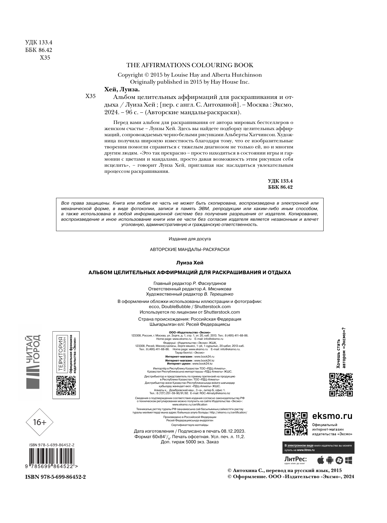 Альбом целит аффирмаций для раскрашивания и отдыха (Луиза Л. Хей); Эксмо, 2024