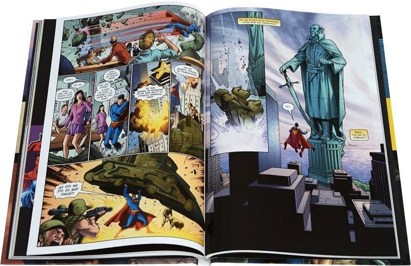 В самый неудачный для человечества день все пошло наперекосяк. Бэтмен и Супермен держут планету стальной хваткой. У людей есть лишь два варианта. Повиноваться или умереть. Начиная с оригинальной обложки читатель может уловить настроения Нового Мирового Порядка. Статуя Свободы передала свои бразды двум величайшим существам запечатленных в металле. Гора Рашмор - бывшее пристанище великих американских президентов ныне застыла в облике Кал-Эла и Бэтса. Так ли было всегда? Куда подевались отличные герои которых мы знали? Ответ на этот вопрос не знает даже Чудо-Женщина.В качестве приглашенных звезд как всегда заглянут на огонек Флэш, Аквамен, Зеленый Фонарь, Марсианский Охотник и даже Джона Хекс(Да, да!!!)! Как относиться к главным персонажам по прочтении решать Вам. Герои или злодеи? -