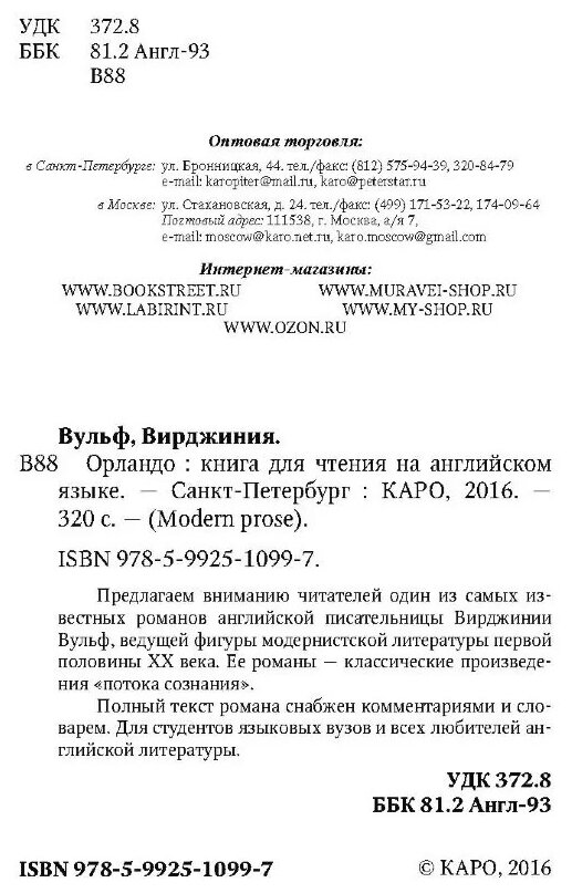 Сервис сравнения цен СкидкаГИД предлагает сравнить цены на товар «Книга: Orlando / Орландо. Книга для чтения на английском языке (Вирджиния Вулф); КАРО, 2016»