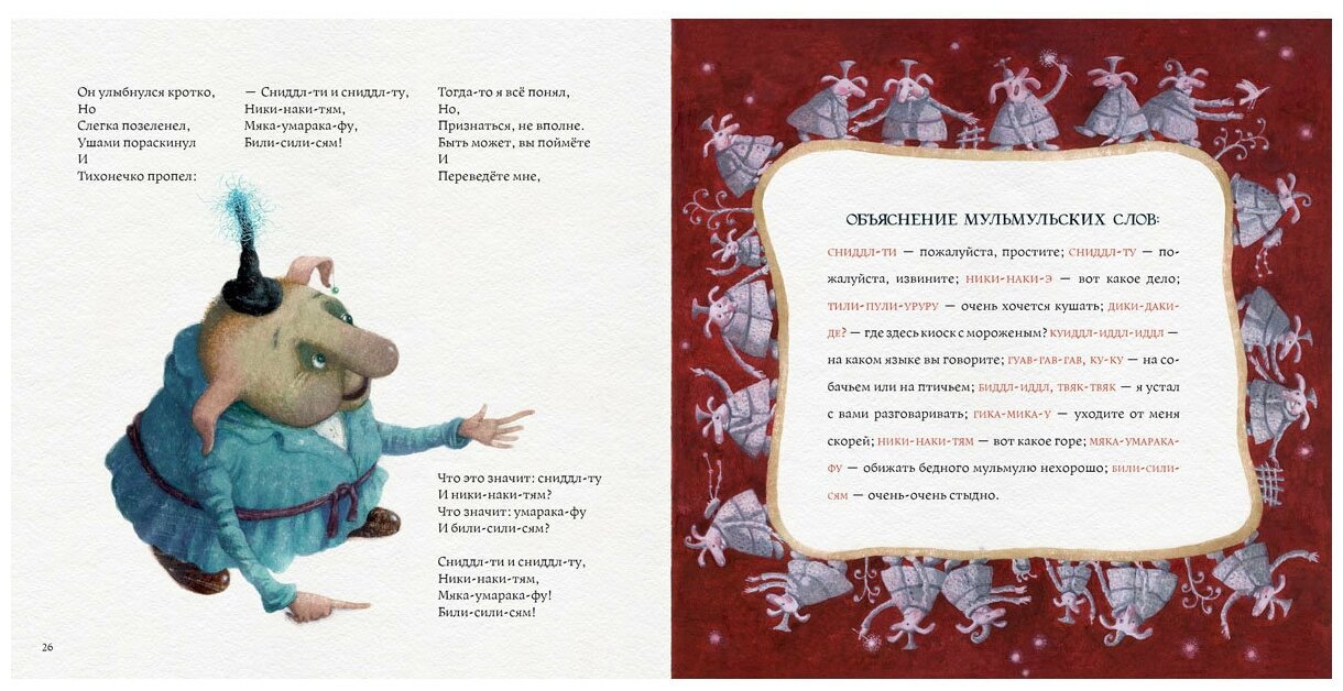 А знаете ли вы, что случается, когда автор затевает игру со словом и с читателем? Сразу же начинают расти грюши (да-да, именно грЮши), а у входа в магазин вас встречает мульмуля и заводит на мульмульском языке светскую беседу.