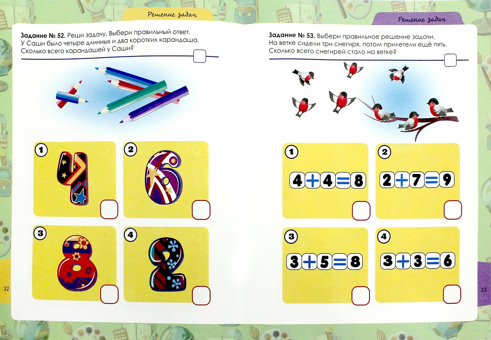 Помните, что перед началом занятия нужно создать спокойную доброжелательную атмосферу. Во время занятия ничто не должно отвлекать маленького ученика от выполнения заданий. Прочитайте задание вслух и дайте ребенку возможность выполнить его самостоятельно. Не торопите его, но и не давайте слишком много времени. Не допускайте переутомления малыша - занимайтесь по книжке не более 20-25 минут в день. Ребенок не должен воспринимать тесты как проверку знаний. В любом случае похвалите малыша за старание!2069