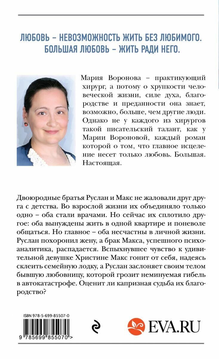 Об авторе: Мария Воронова – кандидат медицинских наук, практикующий врач, работает в экстренной хирургии, она не понаслышке знает о российской медицине. Поэтому ее герои практически всегда врачи – люди, у которых, кажется, с течением времени притупляются всякие эмоции и чувства. Но именно им Мария дает шанс на любовь...