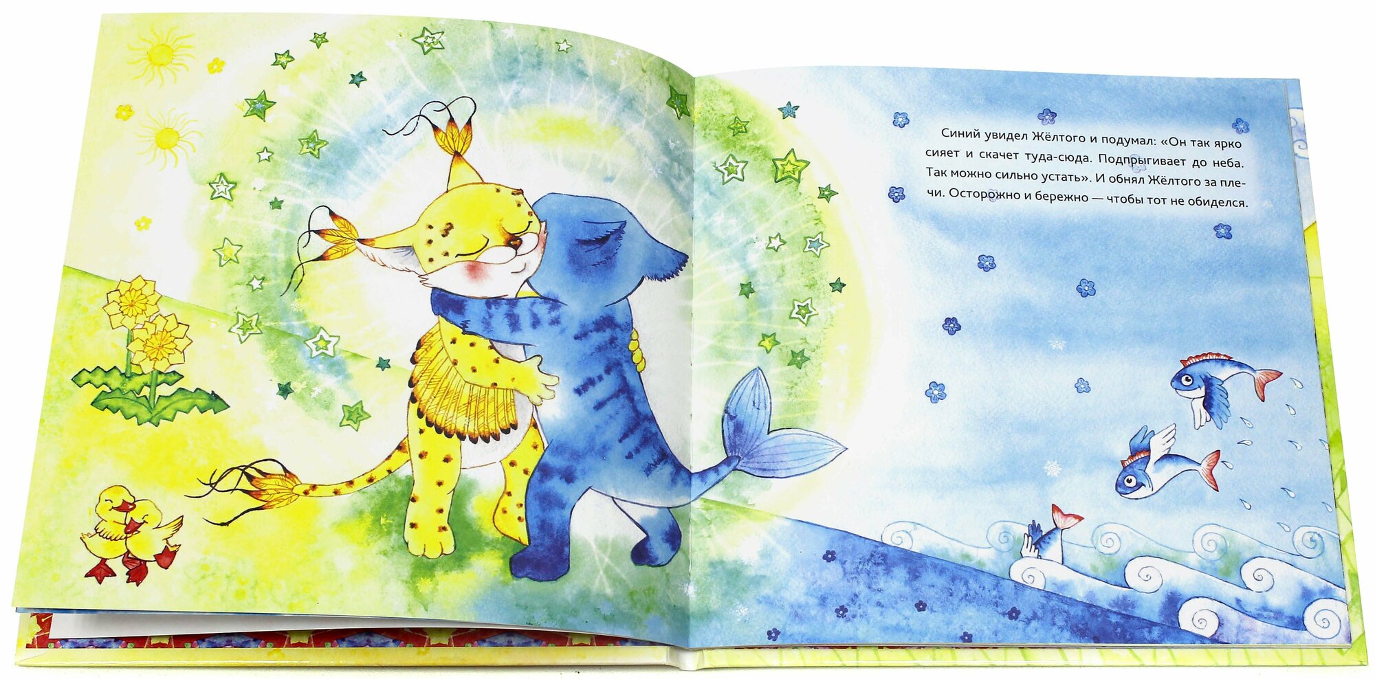 Когда появился Жёлтый, он брызнул в разные стороны и залил собой целый мир. "Ах!" - сказали все и даже зажмурились. А Жёлтый засмеялся, заплясал и запрыгал. А что происходило, когда появлялись другие? Красный, Синий, кто вы такие? И что получится из вас? Может быть, праздник? Может быть, сказка? А может, цветная жизнь?