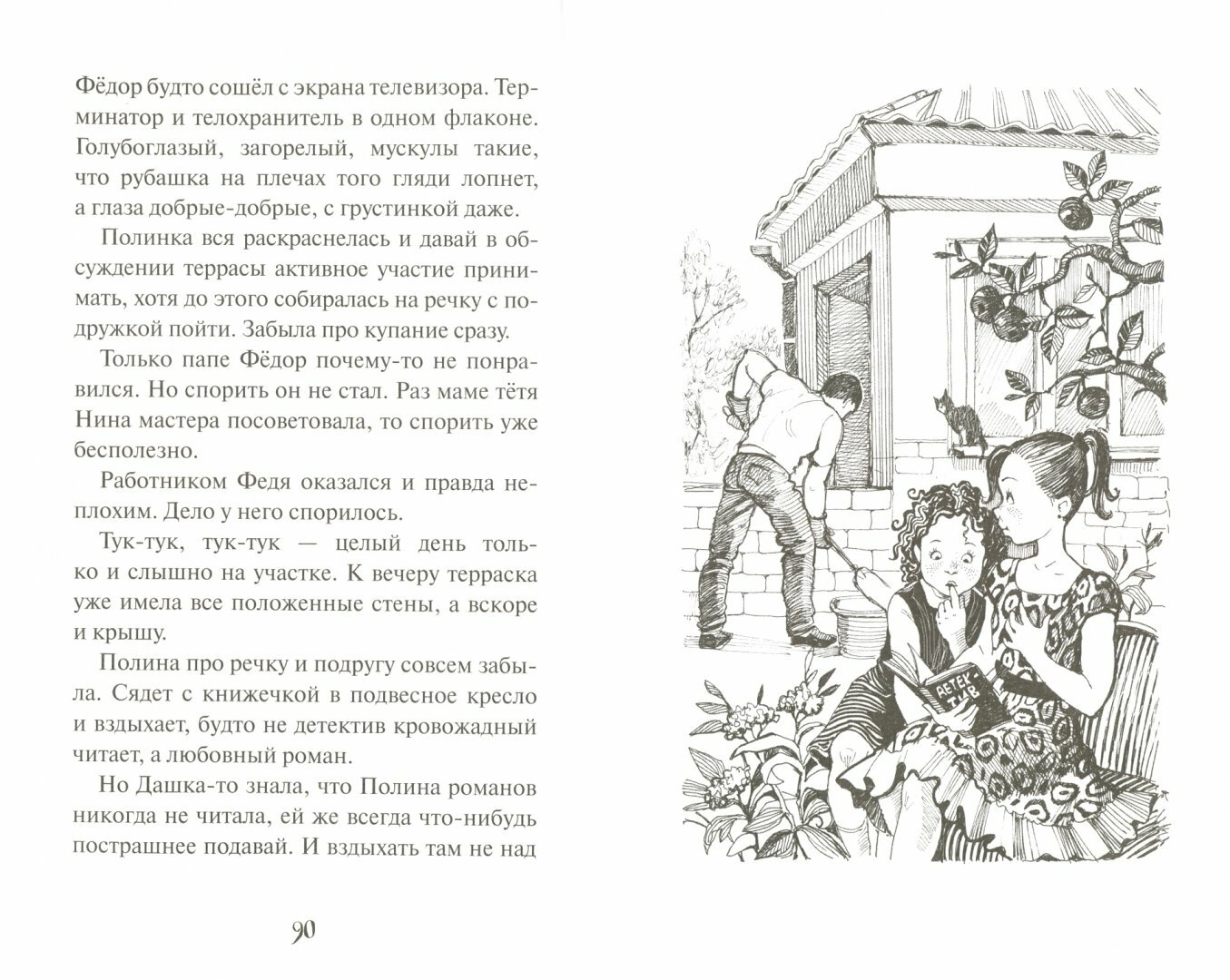 «Вечером, когда все вместе пили на кухне чай, Дашка с Полиной думали, какая всё-таки у них дружная семья. И ведь не зря говорят, что в семью, где лад, счастье дороги не забывает. Только в счастливой семье папа может купит торт просто так. И так вовремя!»