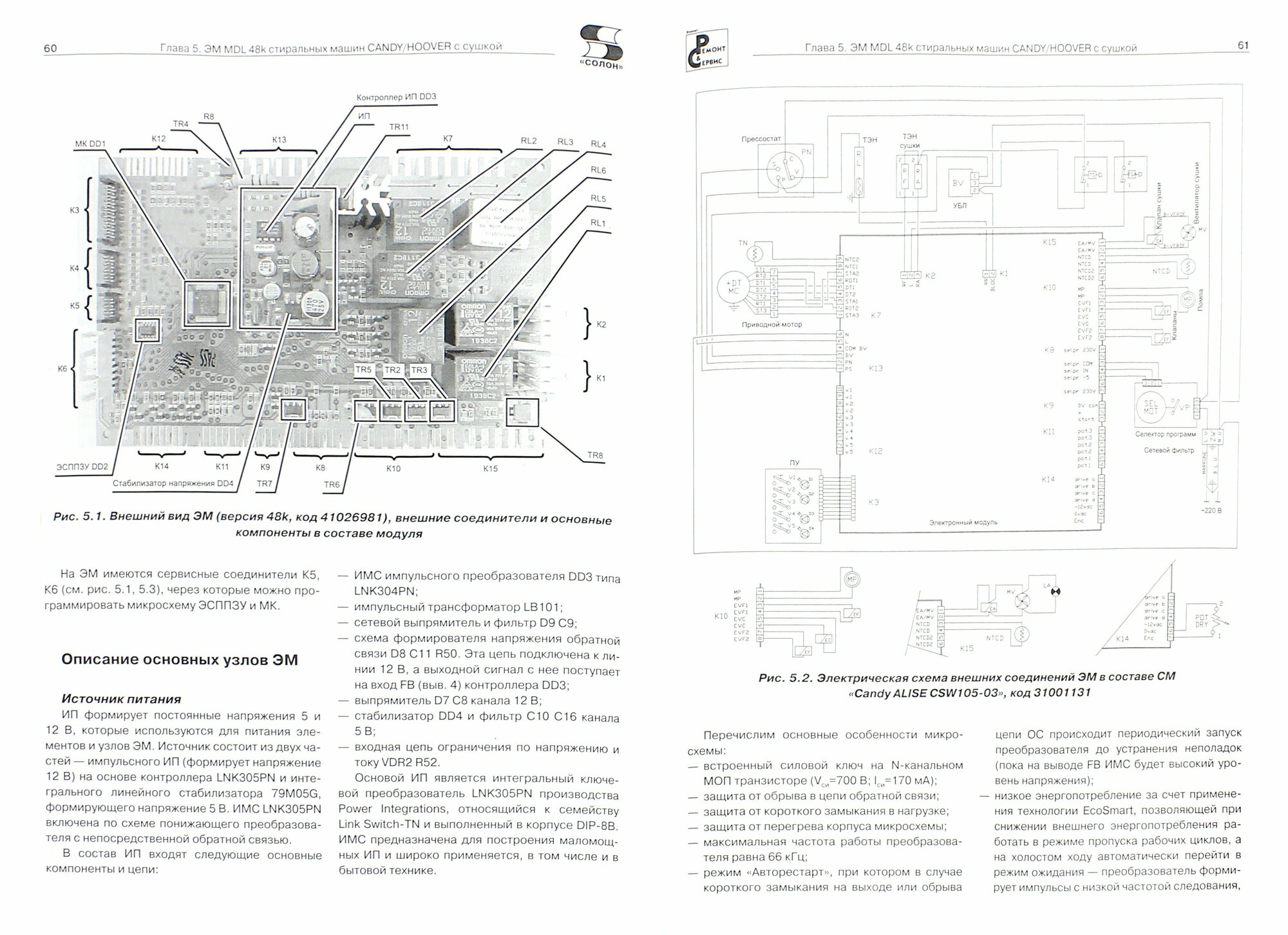 В этой книге рассматриваются электронные модули стиральных машин Атлант, Candy/Hoover, Gorenje, Electrolux/Zanussi/Aeg, Samsung, Vestel, Vico, Whirlpool (всего более 1000 моделей). Помимо описания принципиальных схем модулей, характерных неисправностей и способов их устранения, даны материалы по взаимодействию основных цепей модулей с компонентами и узлами в составе стиральной машины. Также в ней приводятся некоторые решения и рекомендации по программированию ЭМ.