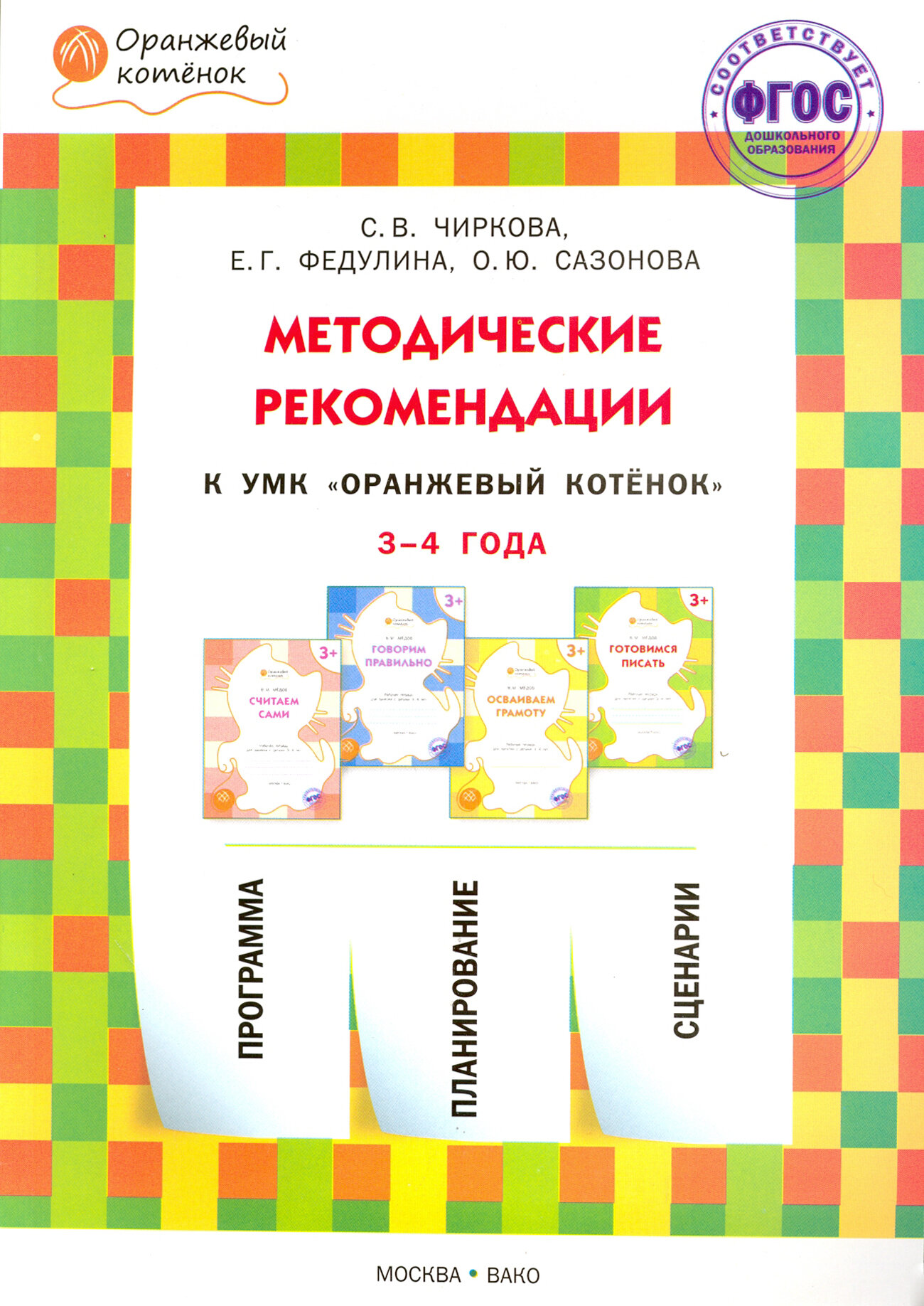 Методические рекомендации к УМК "Оранжевый котёнок" для занятий с детьми 3-4 лет. ДО (Чиркова Светлана Владимировна, Федулина Елена Германовна, Сазонова Ольга Юрьевна); Вако, 2016
