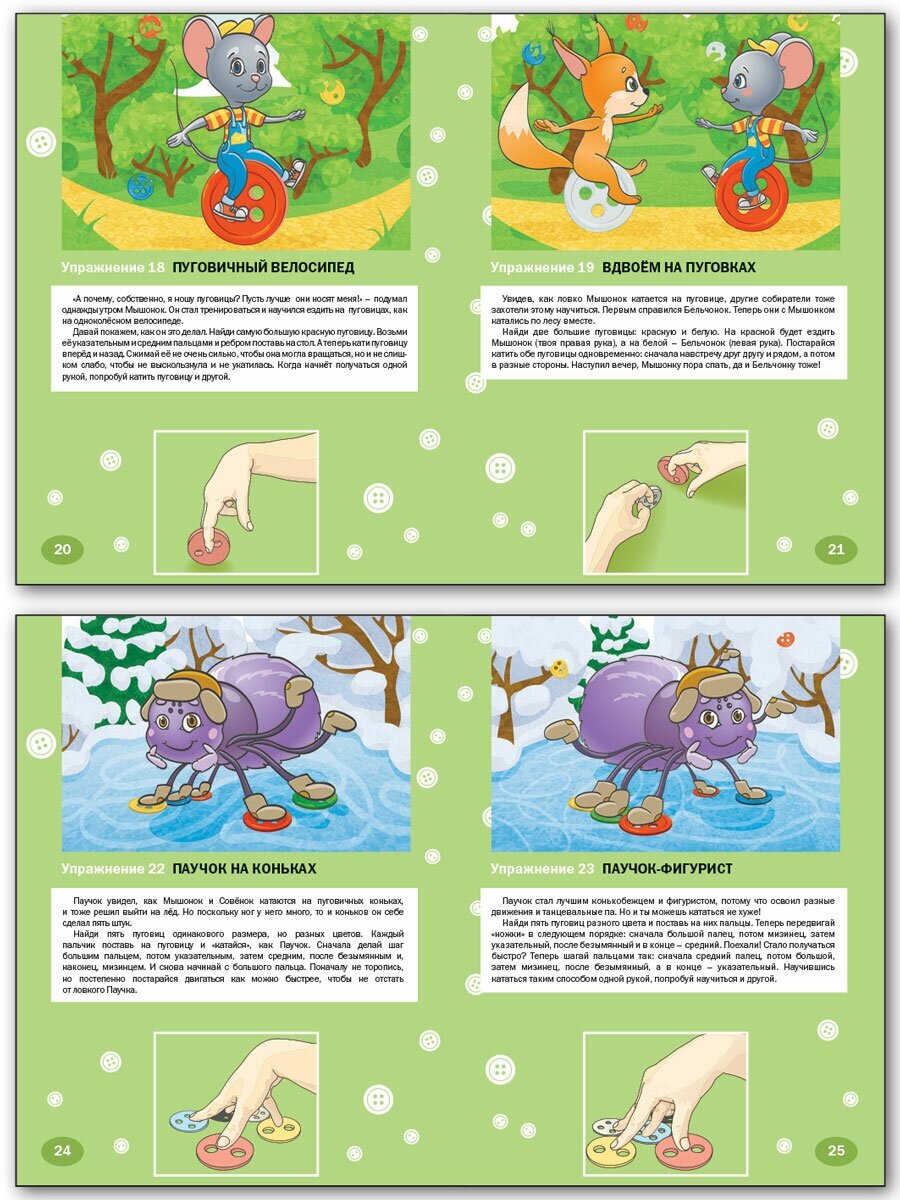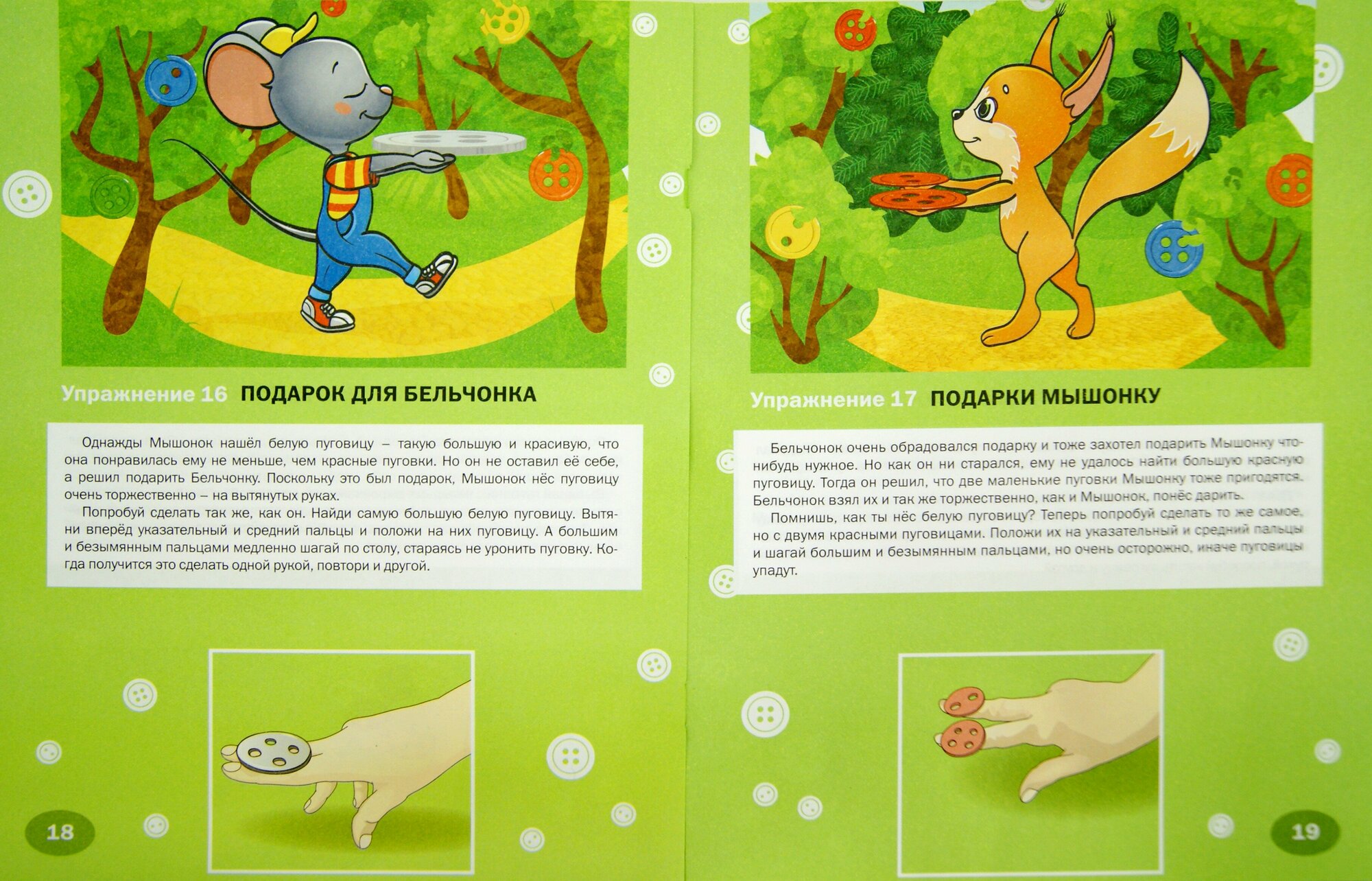 Для работы с книгой хорошо бы иметь дома пуговки покрупнее, т.к только они хорошо подойдут для выполнения упражнений.