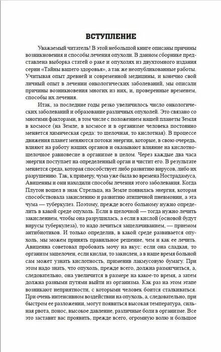 В этой книге описаны причины возникновения и способы лечения онкологических заболеваний. Информация, данная в книге, базируется на опыте древней и современной медицины, а также на личном опыте авторов в лечении опухолей. Книга предназначена для широкого круга читателей и может помочь решить многие проблемы, связанные со здоровьем. Однако не стоит воспринимать данную информации как учебник по медицине. Все рекомендации и способы лечения, приведенные в ней, следует использовать после согласования с лечащим врачом.