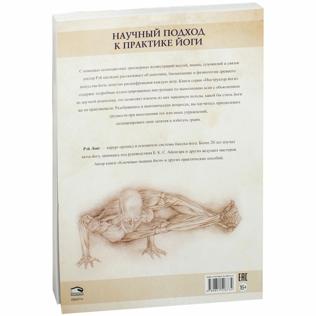 С помощью полноцветных трехмерных иллюстраций костей, мышц, сухожилий и связок доктор Рэй наглядно рассказывает об анатомии, биомеханике и физиологии древнего искусства йоги, попутно расшифровывая каждую позу. Книги серии "Инструктор йоги" содержат подробные иллюстрированные инструкции по выполнению асан с объяснением их научной подоплеки, что позволяет извлечь из них максимум пользы, какой бы стиль йоги вы ни практиковали. Разобравшись в анатомических вопросах, вы научитесь преодолевать трудности при выполнении тех или иных упражнений, оптимизировать свои занятия и избегать травм.