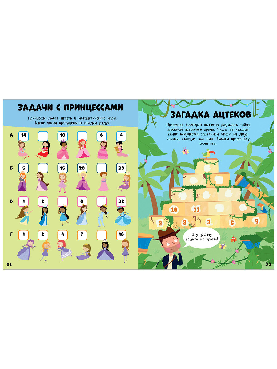 Как победить всех принцесс на математическом турнире, разгадать тайну ацтекского храма и заодно подготовиться к новому учебному году? Легко, с помощью новой творческой тетради! Внутри красочной развивалки более 50 увлекательных заданий на логику, внимание и сообразительность, странички плотные и не глянцевые. Скорее берите карандаши! Ваш ребенок с удовольствием погрузится в мир головоломок, кроссвордов и лабиринтов: сосчитает всех фей в волшебном лесу, вызволит балерину из заколдованного лабиринта, найдет лишнее животное в зоопарке, раскрасит котиков и бабочек. Задания подходят как для самостоятельного времяпрепровождения, так и для совместного досуга. Вы весело и интересно скоротаете часы в дороге или в плохую погоду.
