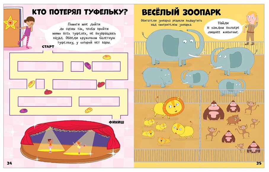 Интересная книжка. Из всех полученных книг дочка 6 лет выбрала именно эту, весь вечер занимались с книжкой, я читала задания, а дочка выполняла задания. Нам только с заданиями со счетом было трудновато. В целом задания разнообразные: найди отличия между картинками, на логику (исключить лишнее, продолжить ряд), на счет, раскрасить по цифрам и др. Непонятно только зачем разделили на 2 книги для мальчиков и для девочек, когда закончим эту книжку планирую купить и для мальчиков, хотя заниматься будем с дочкой. Неужели девочки задания только про принцесс и цветочки должны решать, а мальчики про машины и паровозы. Мне кажется можно сделать одну большую книгу и увеличить кол-во заданий, а не разделять по полам. Девочки, если задания интересные, и машинки тоже посчитать и сравнить могут.