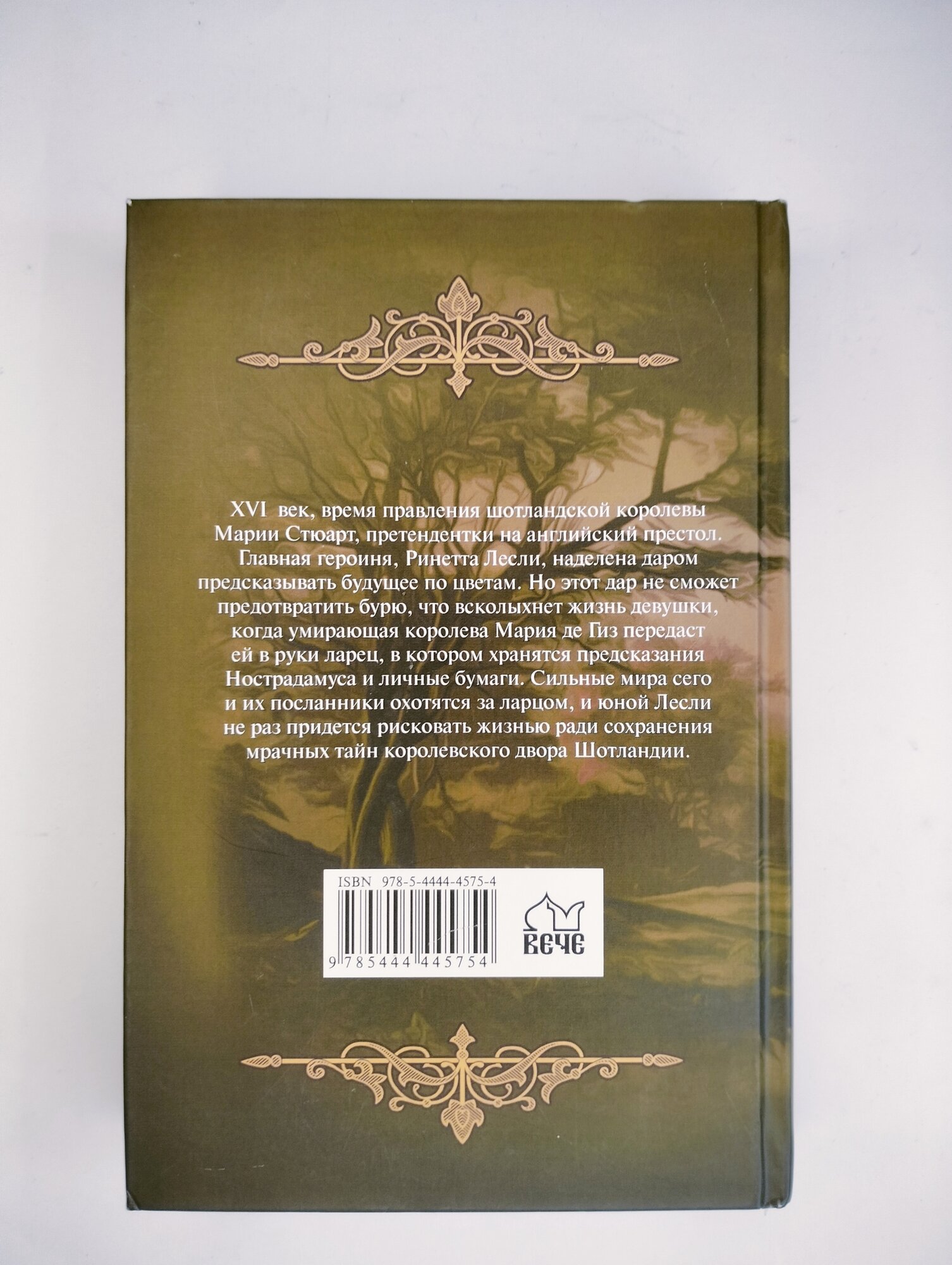 XVI век, время правления шотландской королевы Марии Стюарт, претендентки на английский престол. Главная героиня, Ринетта Лесли, наделена даром предсказывать будущее по цветам. Но этот дар не сможет предотвратить бурю, что всколыхнет жизнь девушки, когда умирающая королева Мария де Гиз передаст ей в руки ларец, в котором хранятся предсказания Нострадамуса и личные бумаги. Сильные мира сего и их посланники охотятся за ларцом, и юной Лесли не раз придется рисковать жизнью ради сохранения мрачных тайн королевского двора Шотландии.