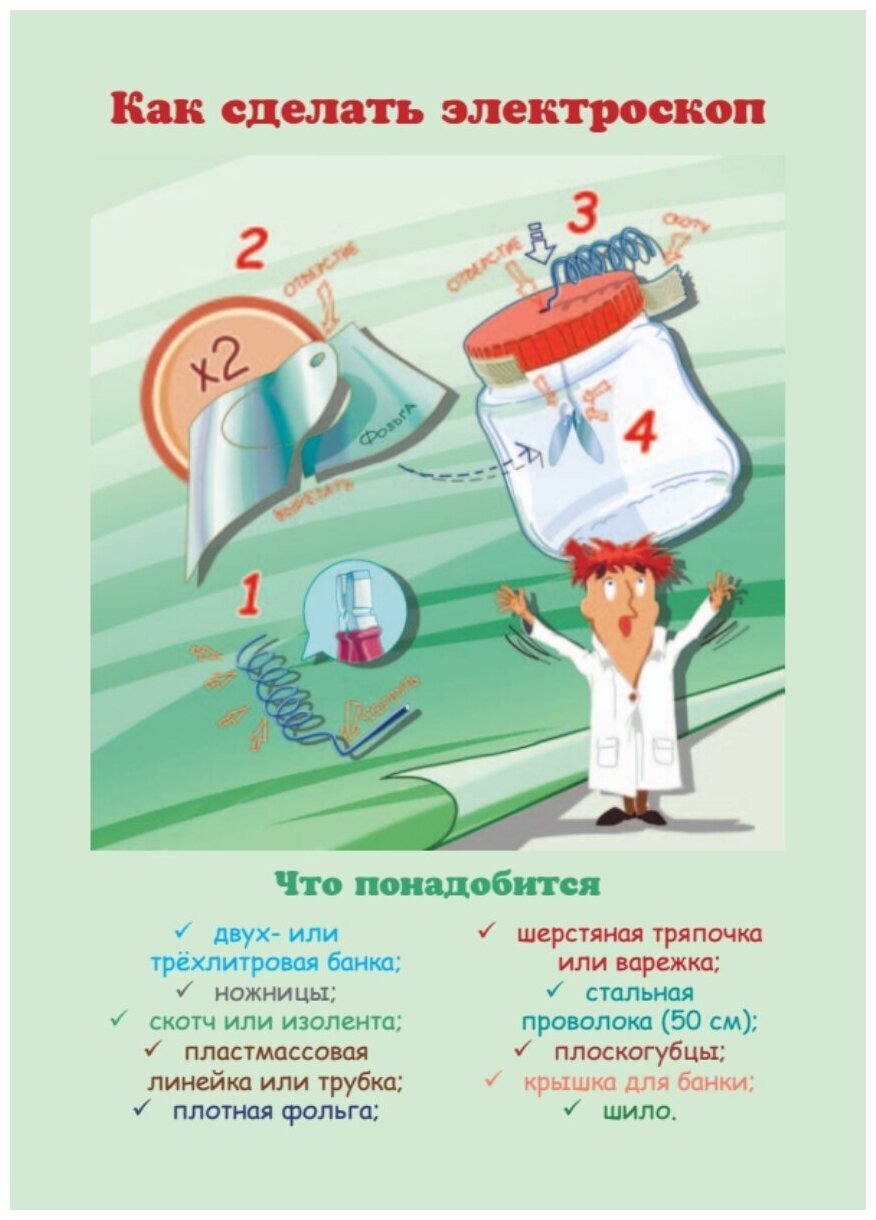 Хотите устроить дома настоящую научную лабораторию? Для этого совершенно не обязательно приобретать дорогостоящее оборудование и реактивы, достаточно будет подручного материала. В комплекте из 25 карточек представлены любопытные эксперименты по физике, химии, биологии, которые можно провести в домашних условиях. На каждой карточке вы найдете пошаговое описание опыта, научное объяснение и веселую иллюстрацию!