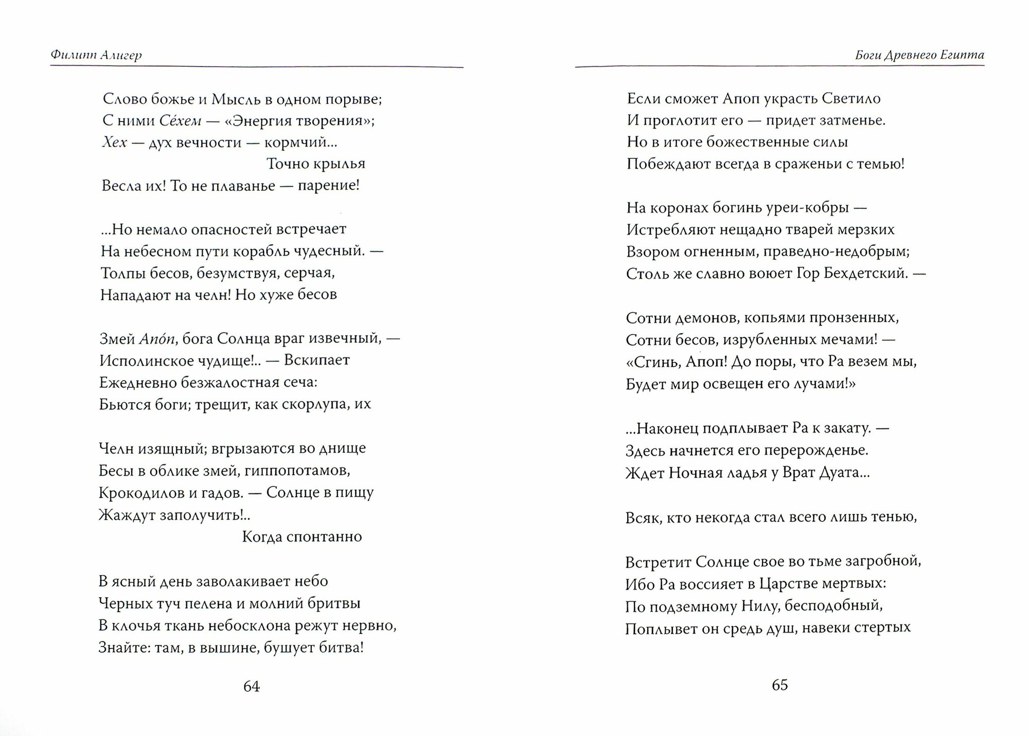 Поэзия - самый красивый и, возможно, наиболее подходящий жанр для пересказа мифов. Поэзия, как и миф, суть иносказание; а иносказание - едва ли не единственный способ правдиво говорить о божественном. Недаром древние предания многих народов известны нам именно в стихотворной форме. Глубоко символичная египетская мифология находит своеобразное стихотворное выражение в изящно сложенной поэме "Боги Древнего Египта".