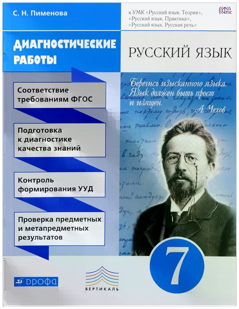 Русский язык.7 класс. Диагностические работы. Вертикаль. (Пименова Светлана Николаевна); Дрофа, 2017