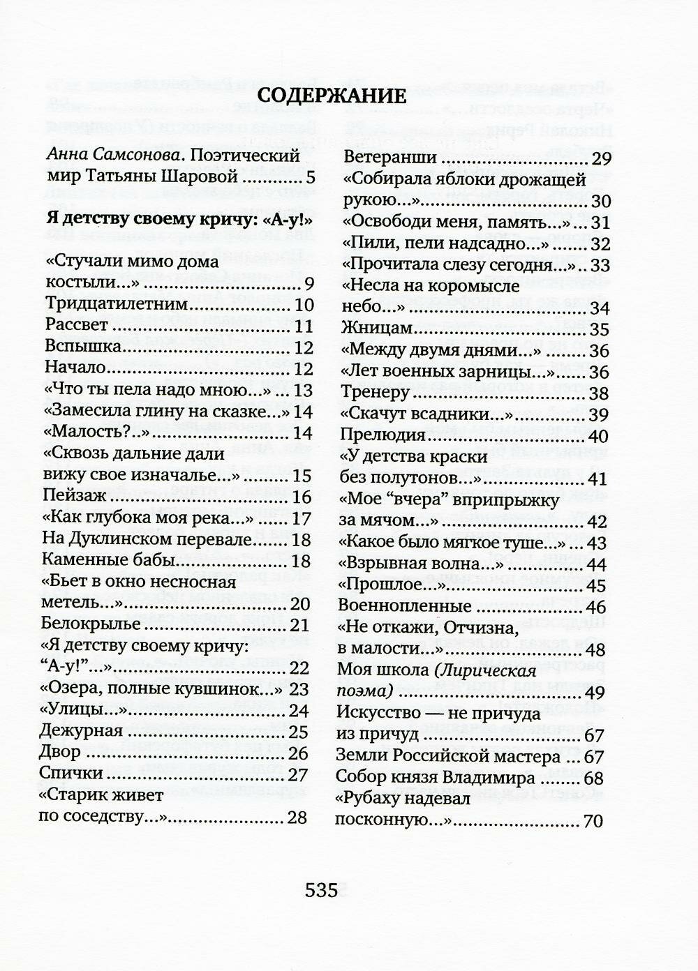 "Сопричастность" - не только точное название большой итоговой книги живущей на Украине русской поэтессы Татьяны Шаровой, но и свойство, присущее всему ее творчеству и личности автора. Все ее произведения о стране, о людях и событиях отмечены высоким гражданским видением, а лирика полна свежей образности и душевности, что не оставляет равнодушным читателя. Поэзия Т. Шаровой, по словам В. Югова, "поэзия без прикрас", творчество, которое "определенным образом влияет на развитие поэтического процесса и в нашем русскоязычном круге, и в других литературных кругах".