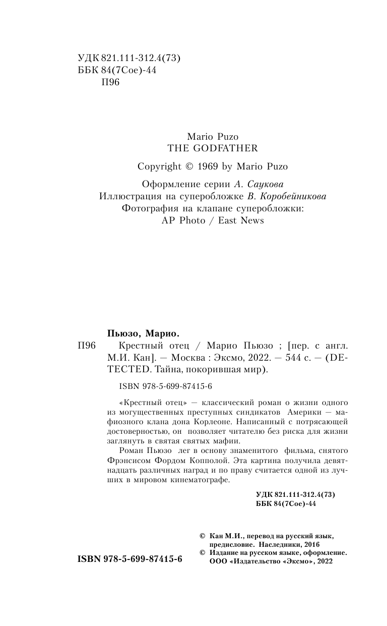 Книга: Крестный отец (Марио Пьюзо); Эксмо, 2022