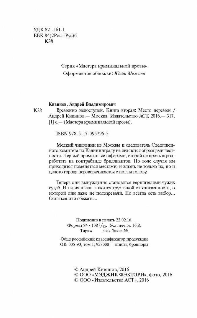 Временно недоступен. Место перемен (Кивинов Андрей Владимирович); ООО "Издательство Астрель", 2016