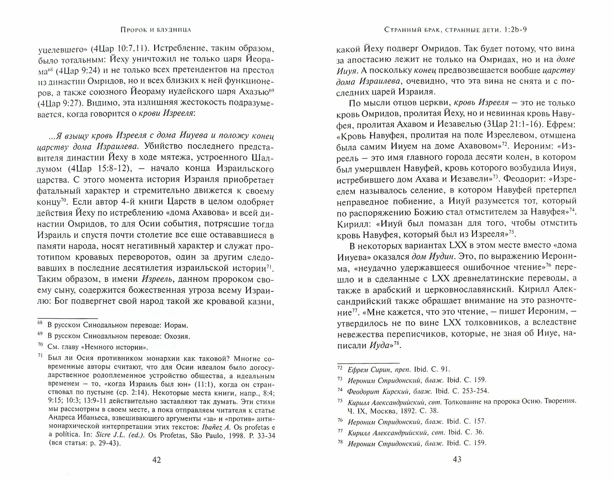 Во второй половине V11I века до н.э. Израиль оказался на краю гибели, на краю полной политической катастрофы. История пророка Осии, которому Господь повелел жениться на проститутке, дает этому событию неожиданное, повергающее благочестивого читателя в изумление и недоумение объяснение. До сих пор остается спорным, что стоит за описанными событиями: реальная ли биография, или притча, или "видение" пророка? Данный комментарий не претендует па всеохватность и является лишь попыткой синтезировать интерпретацию столь интригующих глав Книги пророка Осии как в древних переподах и толкованиях, так и в современной экзегетике.