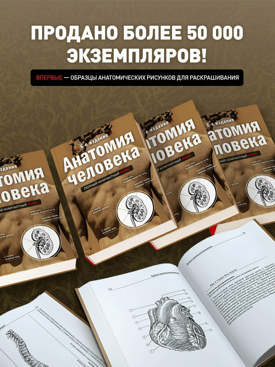 "Анатомия человека: полный компактный атлас" - надежный справочник, по которому просто учить анатомию: в книге наглядно и с объяснениями показаны все системы и органы человека. Есть удобная навигация по главам на обрезе и специальный словарь-указатель с комментариями и ссылками на соответствующие анатомические структуры. Терминология, используемая в атласе, содержит и последнюю версию Nomina Anatomika, и предыдущие, принятые в анатомической практике названия. Кроме того, в издание впервые даны пробные страницы для закрашивания (см. комментарии на обороте обложки), которые упростят изучение анатомии.