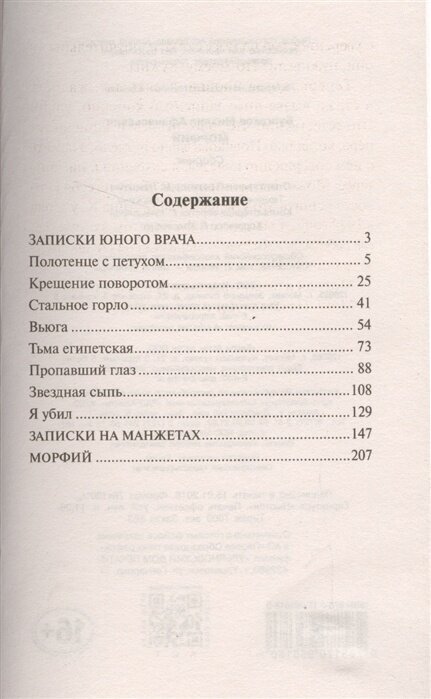В этот сборник вошли произведения Булгакова, носящие автобиографический характер, - остроумная, ироничная повесть "Записки на манжетах", посвященная скитаниям по послереволюционному Кавказу, сложным отношениям с "красной" властью и собратьями по перу, мечтам об эмиграции и первым опытам в литературе, и потрясающие "Записки юного врача" - почти документальные очерки Булгакова о святом и страшном жребии служителя Гиппократа в нищей, почти средневековой российской провинции начала 1920-х. В книгу включен и "Морфий" - пугающе откровенная, мучительная исповедь, послужившая основой для одноименного фильма Алексея Балабанова.
