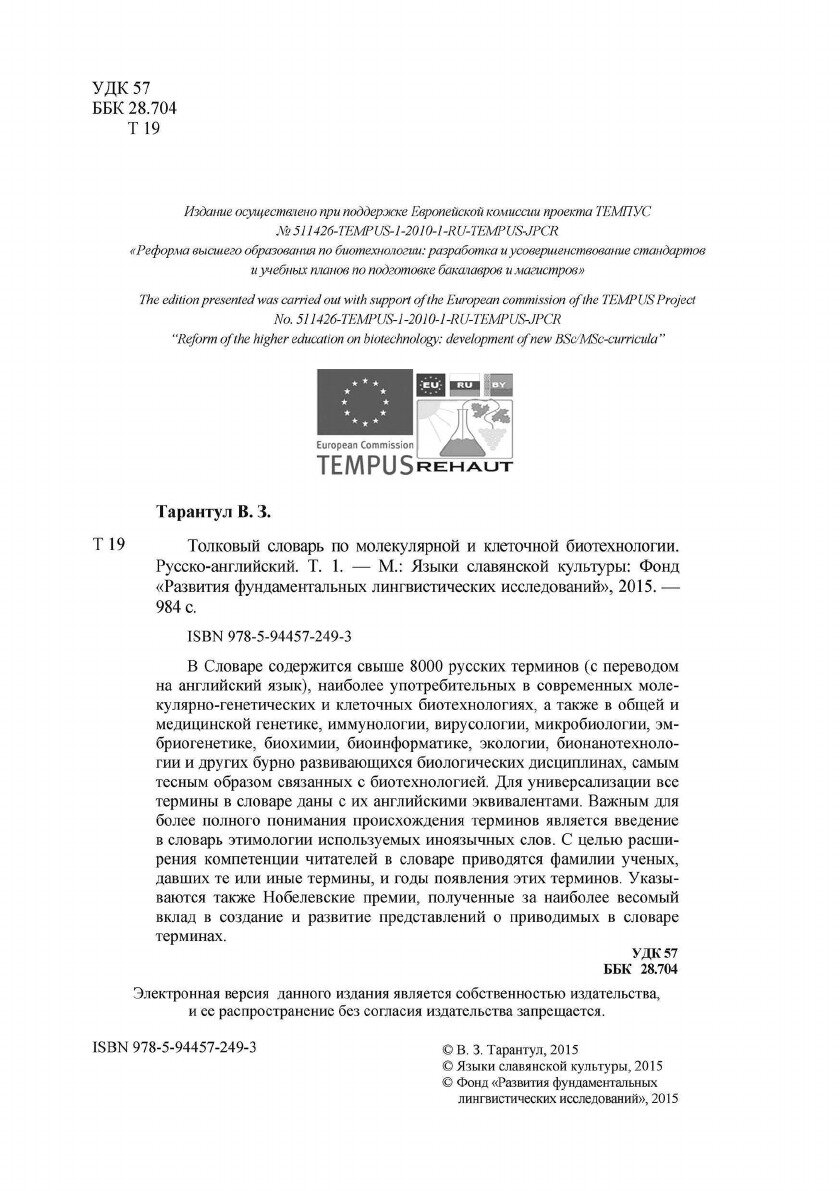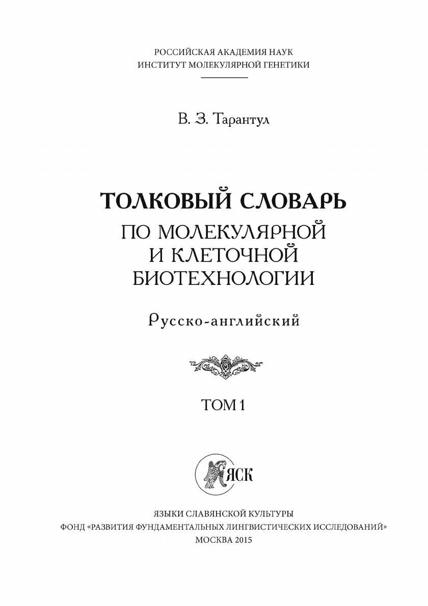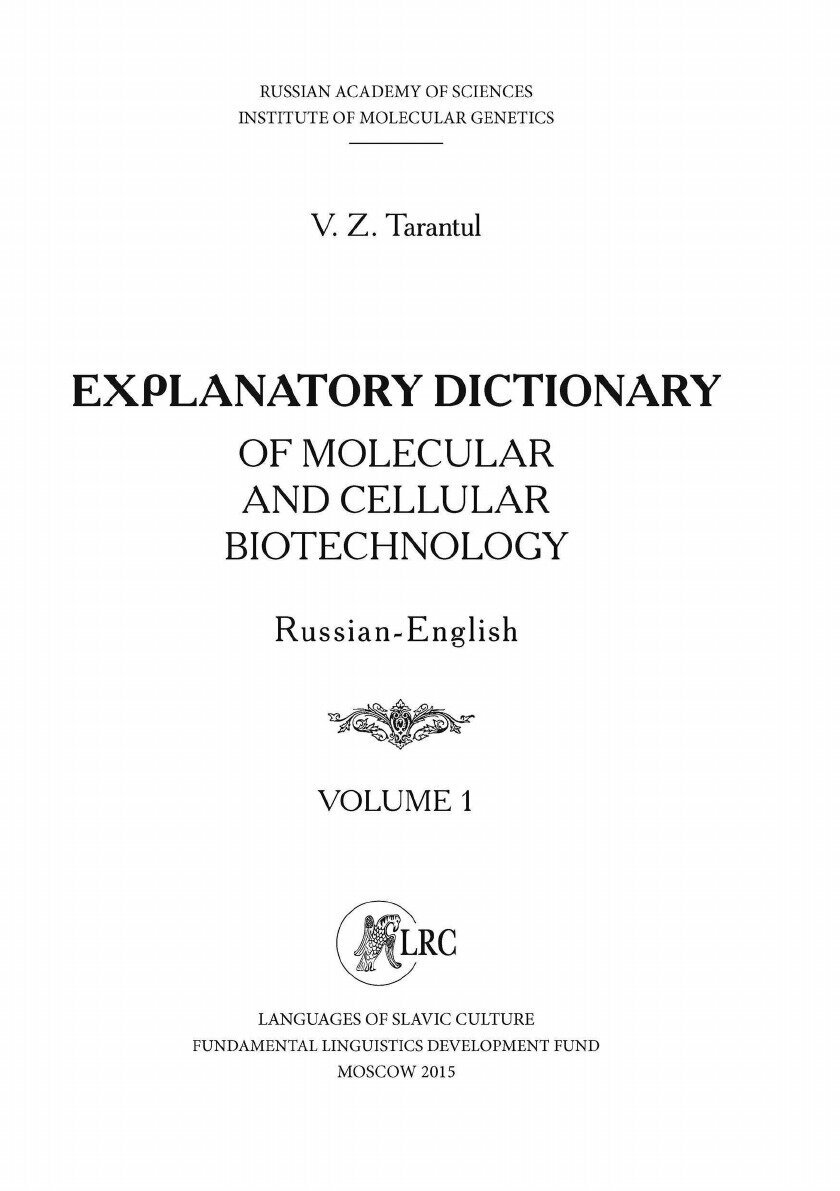 Толковый словарь по молекулярным и клеточным биотехнологии. Русско-английский. . Том 1 (Вячеслав Тарантул); Языки Славянской Культуры, 2015
