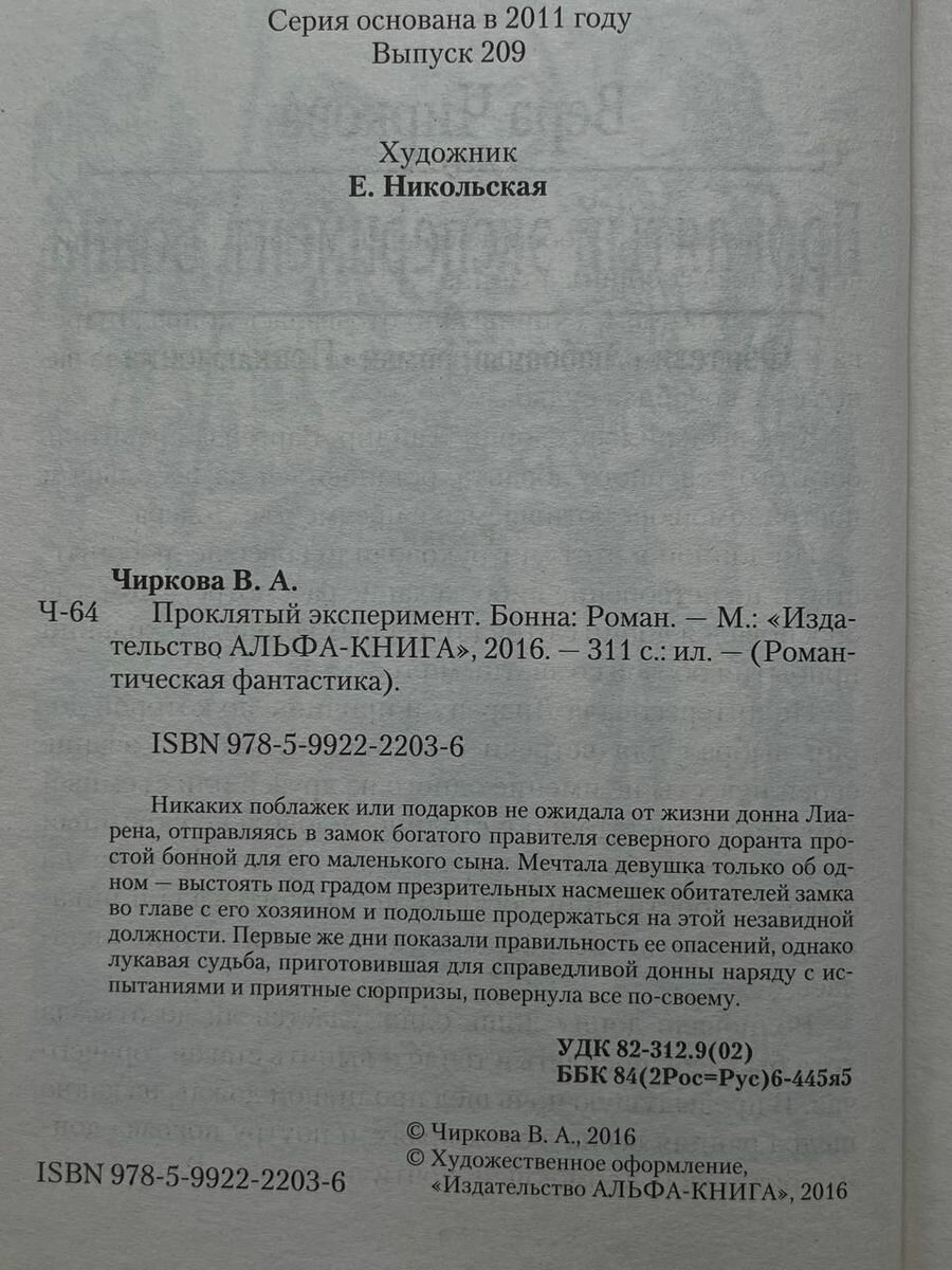 Очень жду эту книгу, Читала еще на Самиздате и надеялась, что ее когда-нибудь издатут (это первая часть дилогии, вторая - Магиня). В книге есть все, что я так люблю у историй Веры Андреевны Чирковой: интригующий сюжет, полный тайн и загадок, замечательные герои, долгий путь к счастью и т.п. Спасибо, Альфа-книга - порадовала!
