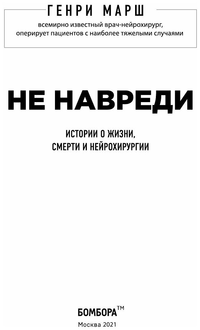 Не навреди. Истории о жизни смерти и нейрохирургии (Марш Генри); ООО "Издательство "Эксмо", 2016