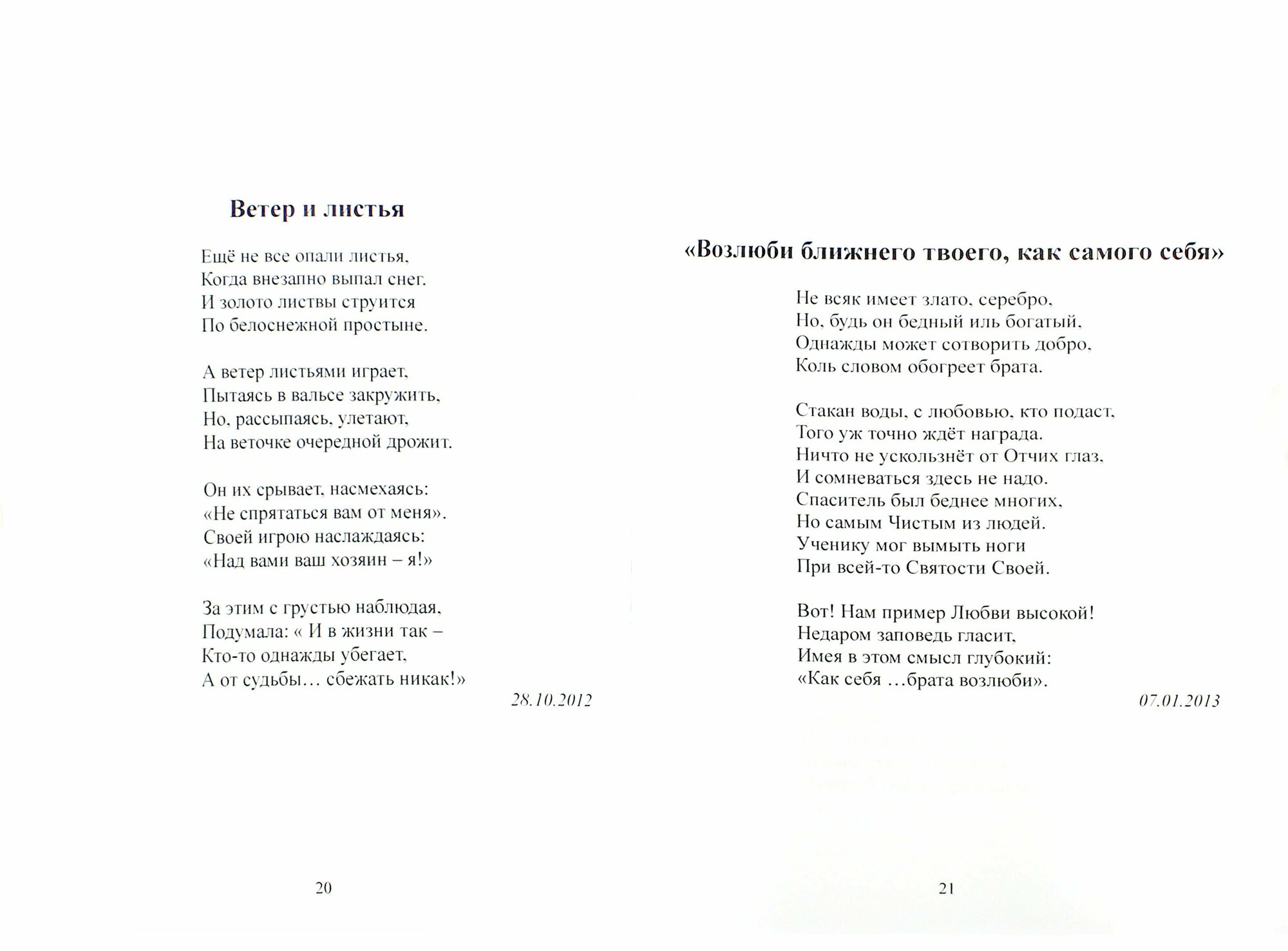 Благодарю Вас уже за то, что, обратив внимание на мою брошюрку, Вы подержали её в руках! В ней: юмор и боль, случаи из моей жизни, увиденные или услышанные мною истории. Уверяю Вас, что читаются эти стихи легко и свободно, как ровное дыхание.