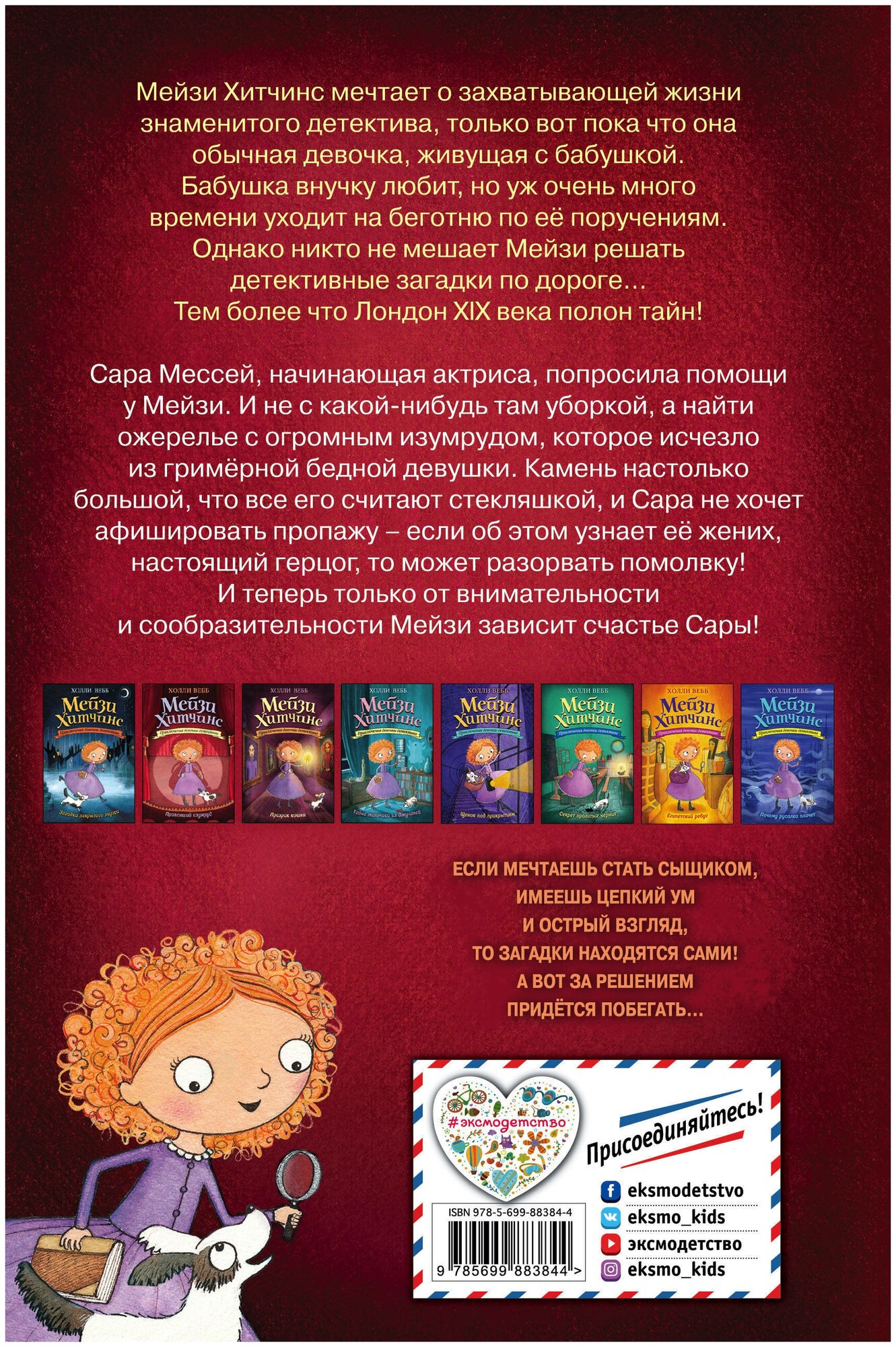 Сара Мессей, начинающая актриса, попросила помощи у Мейзи. И не с какой-нибудь там уборкой, а найти ожерелье с огромным изумрудом, которое исчезло из гримёрной бедной девушки. Камень настолько большой, что все его считают стекляшкой, и Сара не хочет афишировать пропажу - если об этом узнает её жених, настоящий герцог, то может разорвать помолвку! И теперь только от внимательности и сообразительности Мейзи зависит счастье Сары!