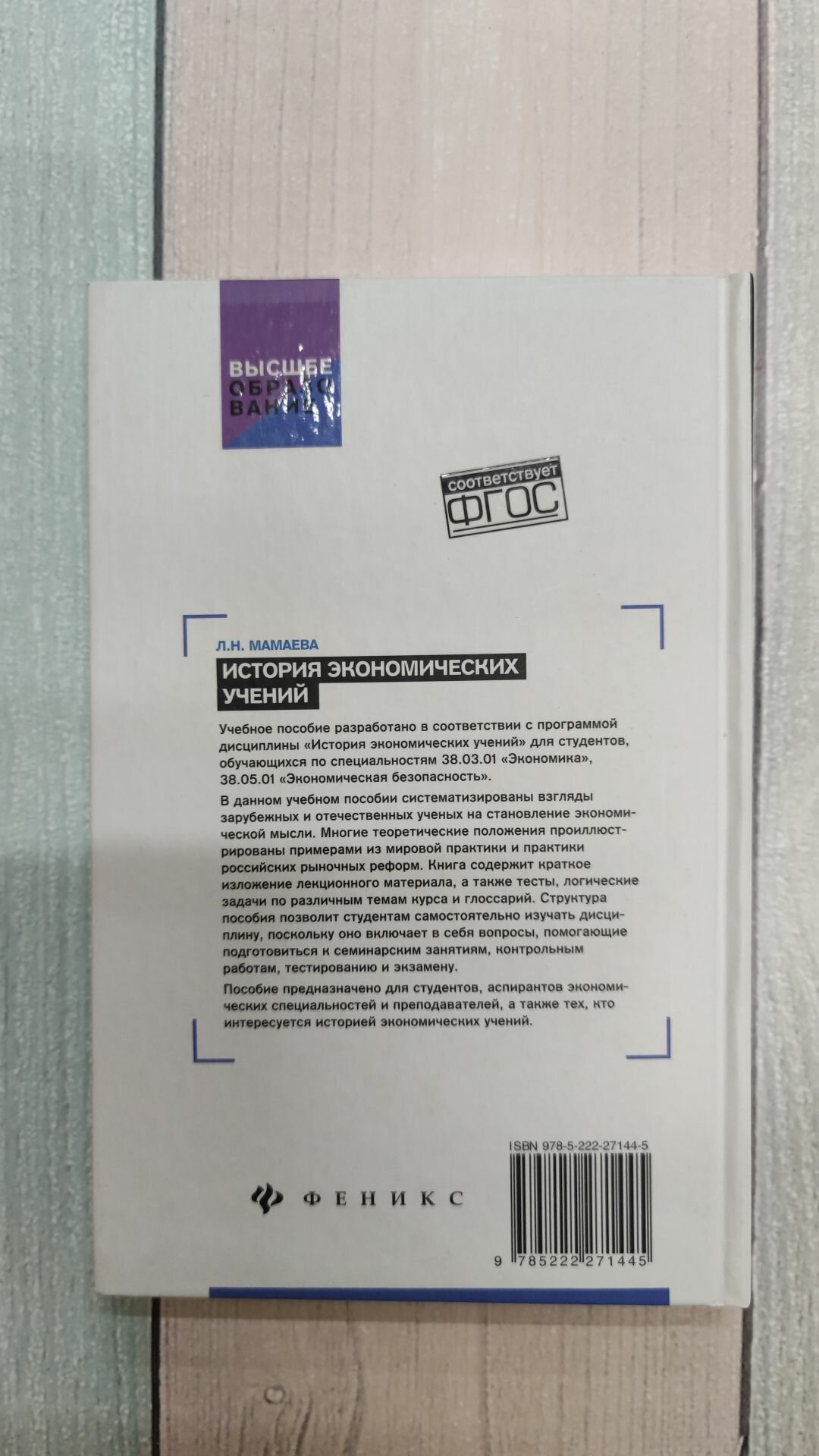 Очень хороший учебник. По истории экономических учений не много литературы. Но экзамен по этому предмету в экономических ВУЗах есть. В нем рассматриваются основные этапы формирования экономической мысли. Основные этапы рассмотрены не очень подробно, но понятно. Понравилось, что в учебнике есть новые имена экономистов-современников, которые не изучались 20 лет назад. Отдельная глава посвящена развитию экономической мысли в России. Написана доступным языком. В конце практическая часть для закрепления материала. Очень хорошее качество печати и книги в целом.Рекомендую.